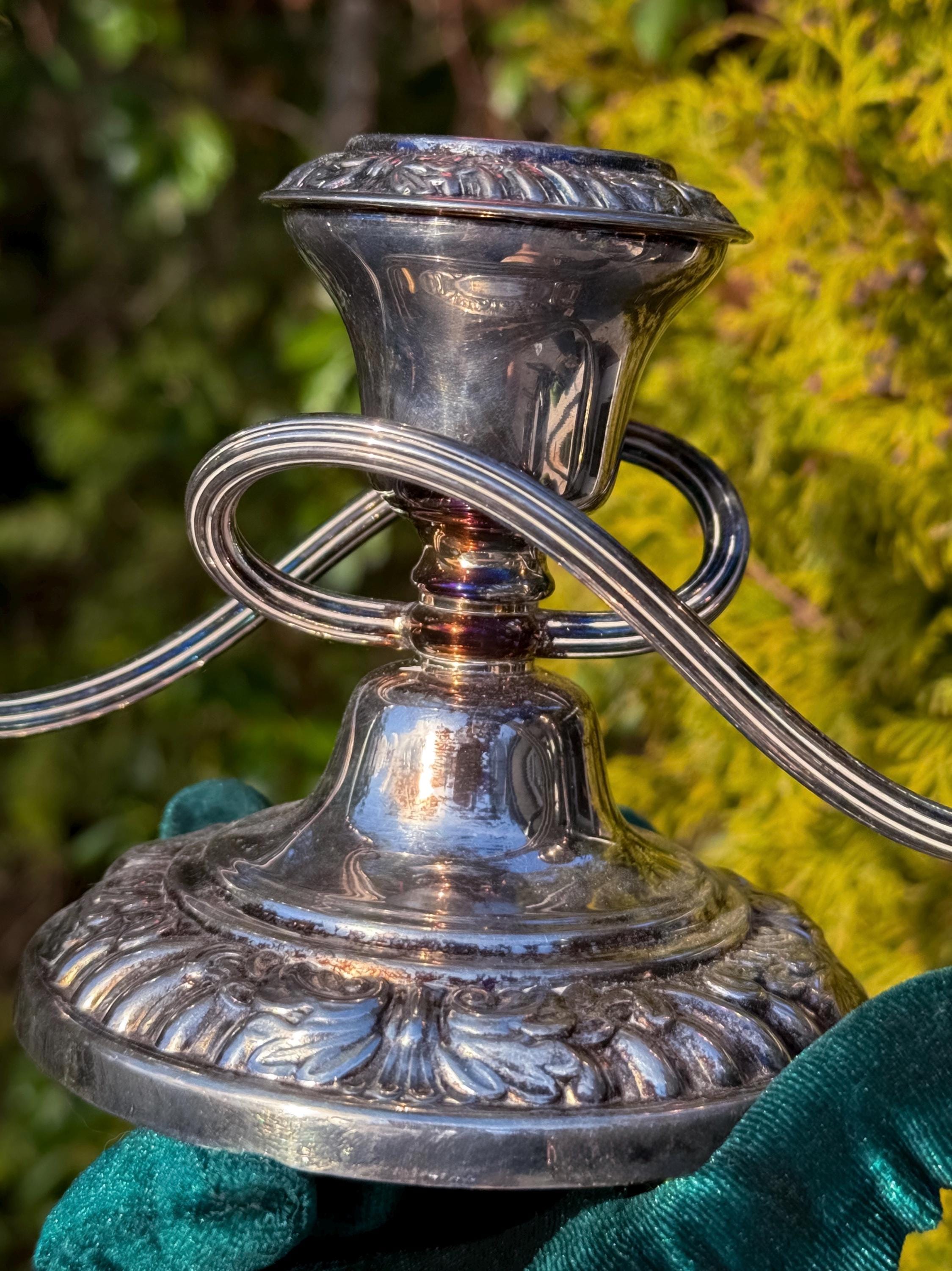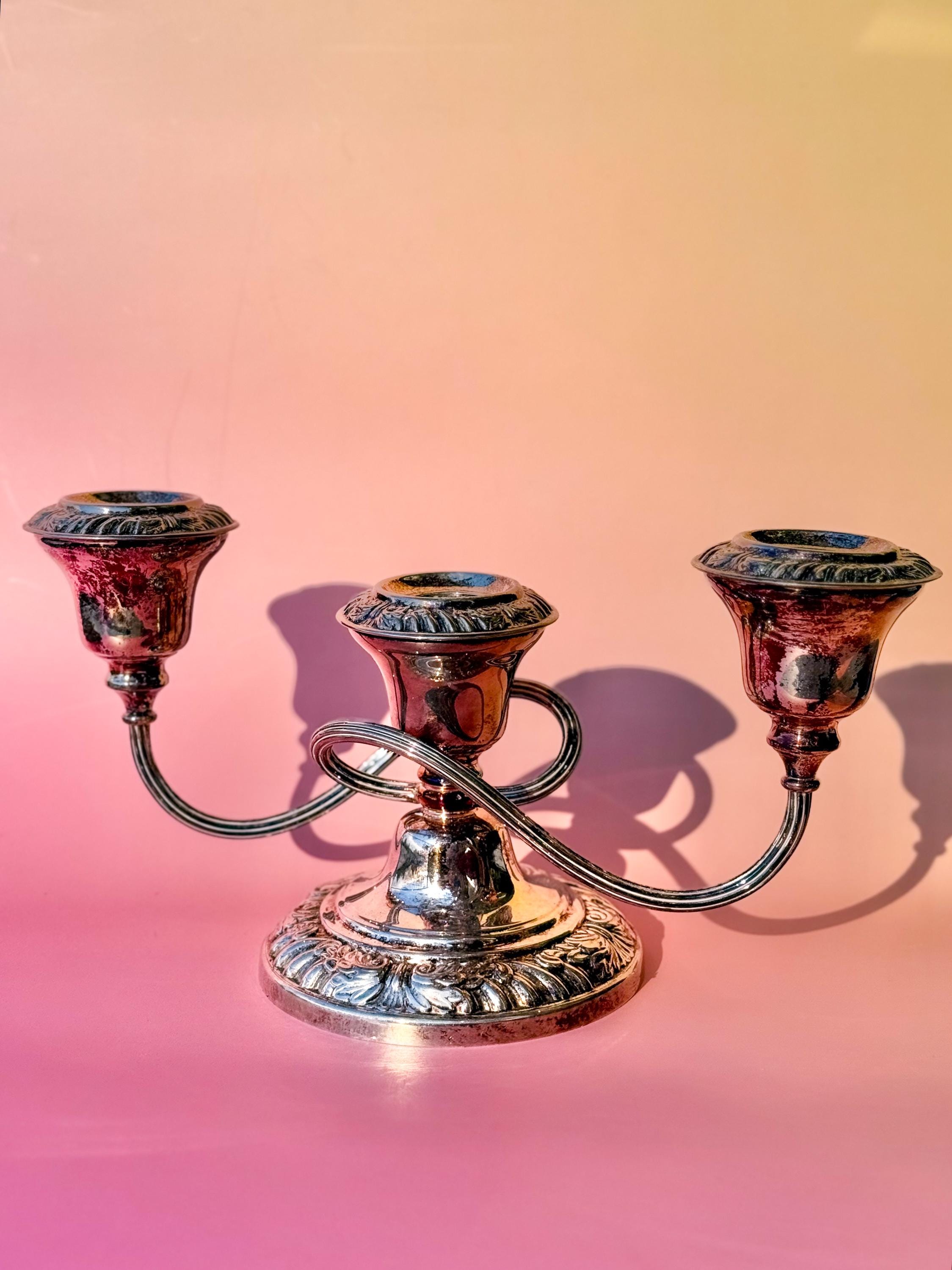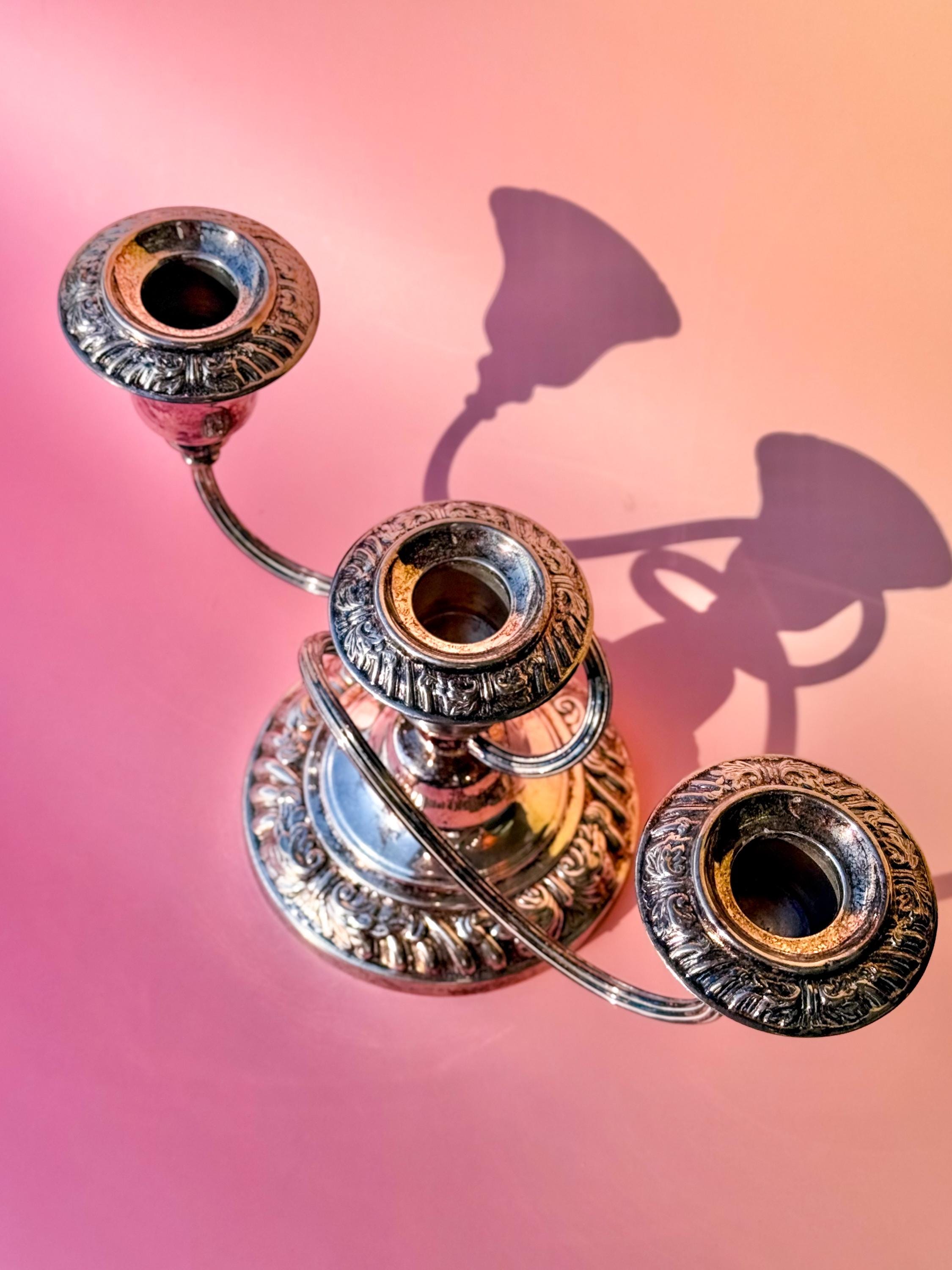 Two antique silverplate knot candelabras. Similar but not matching. One seems to be Chromium and untarnishing. The other has more detail with a bit of a darker tarnish. Both fabulous, both in a vintage classic design. I can’t find any silver markings. As seen on The Traitors breakfast table. Please select your option from the drop-down menu.