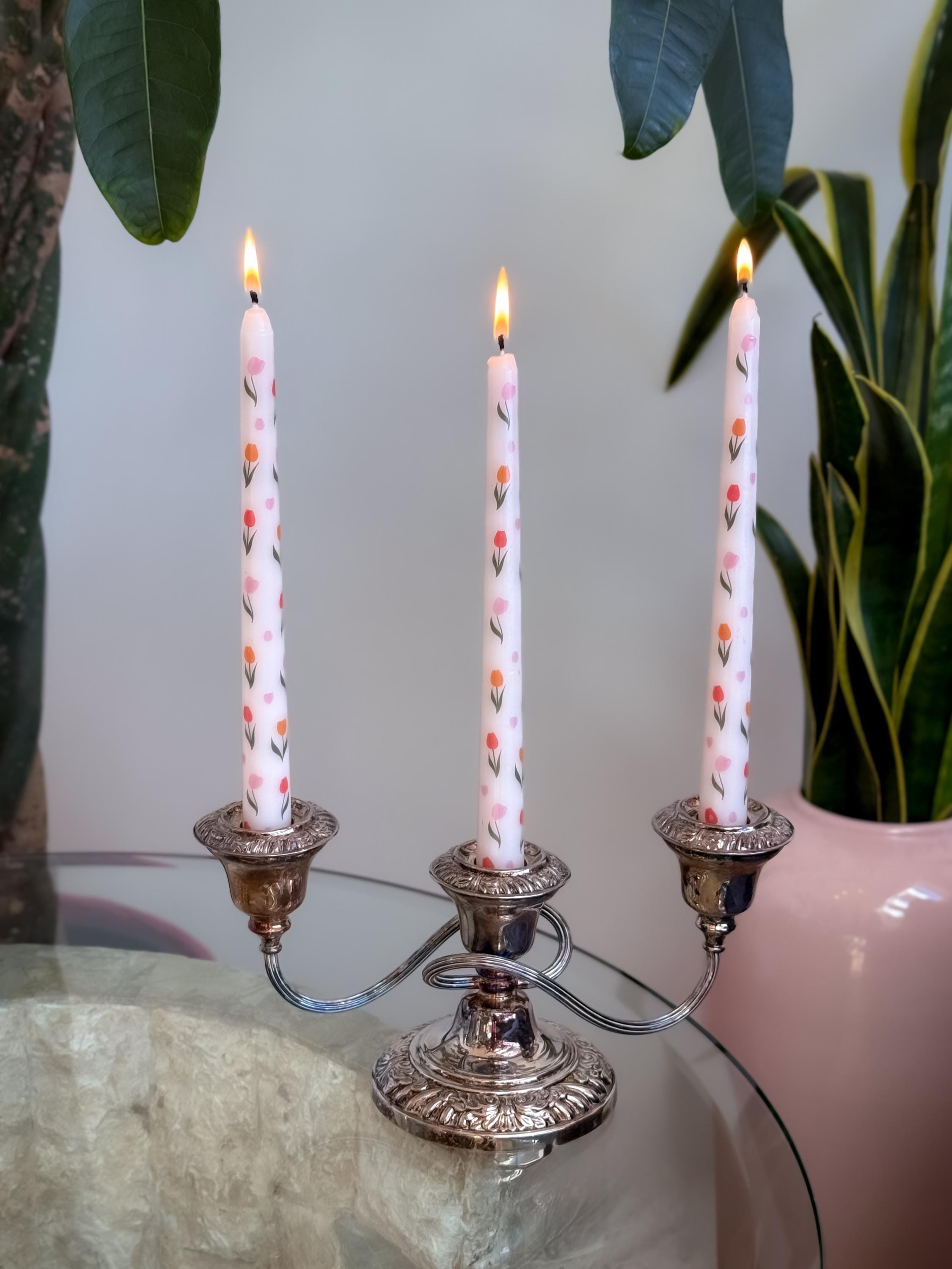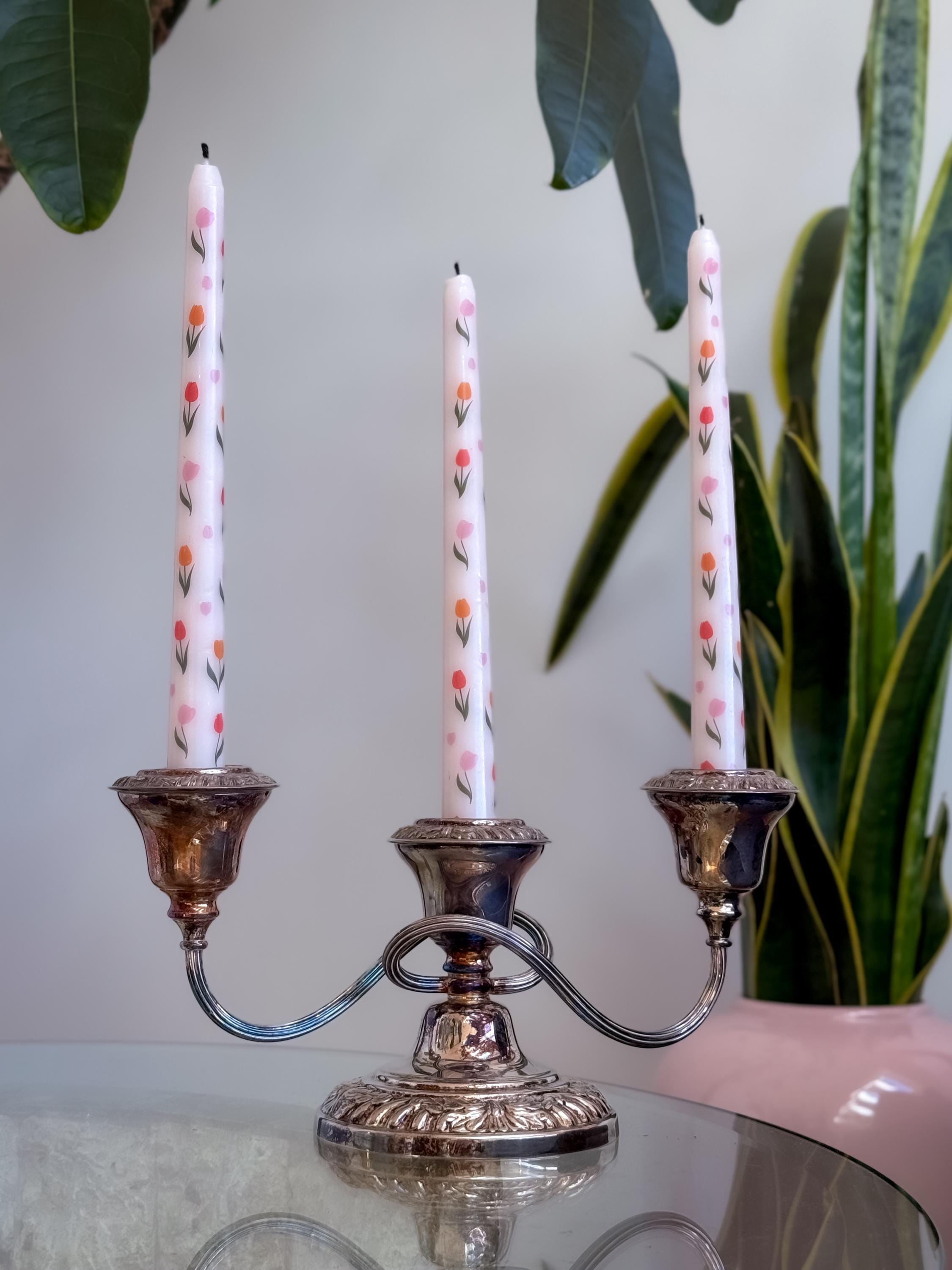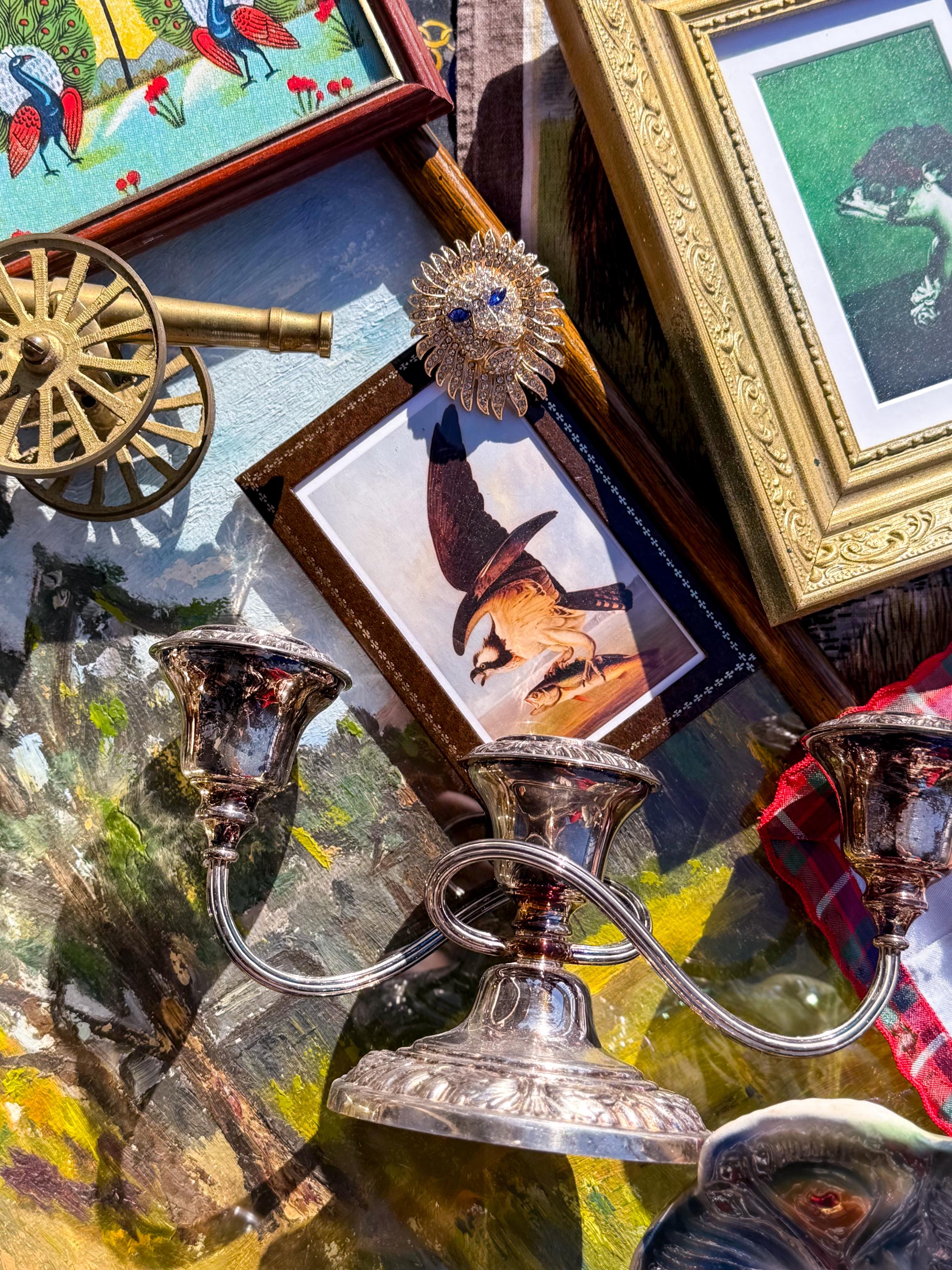 Two antique silverplate knot candelabras. Similar but not matching. One seems to be Chromium and untarnishing. The other has more detail with a bit of a darker tarnish. Both fabulous, both in a vintage classic design. I can’t find any silver markings. As seen on The Traitors breakfast table. Please select your option from the drop-down menu.