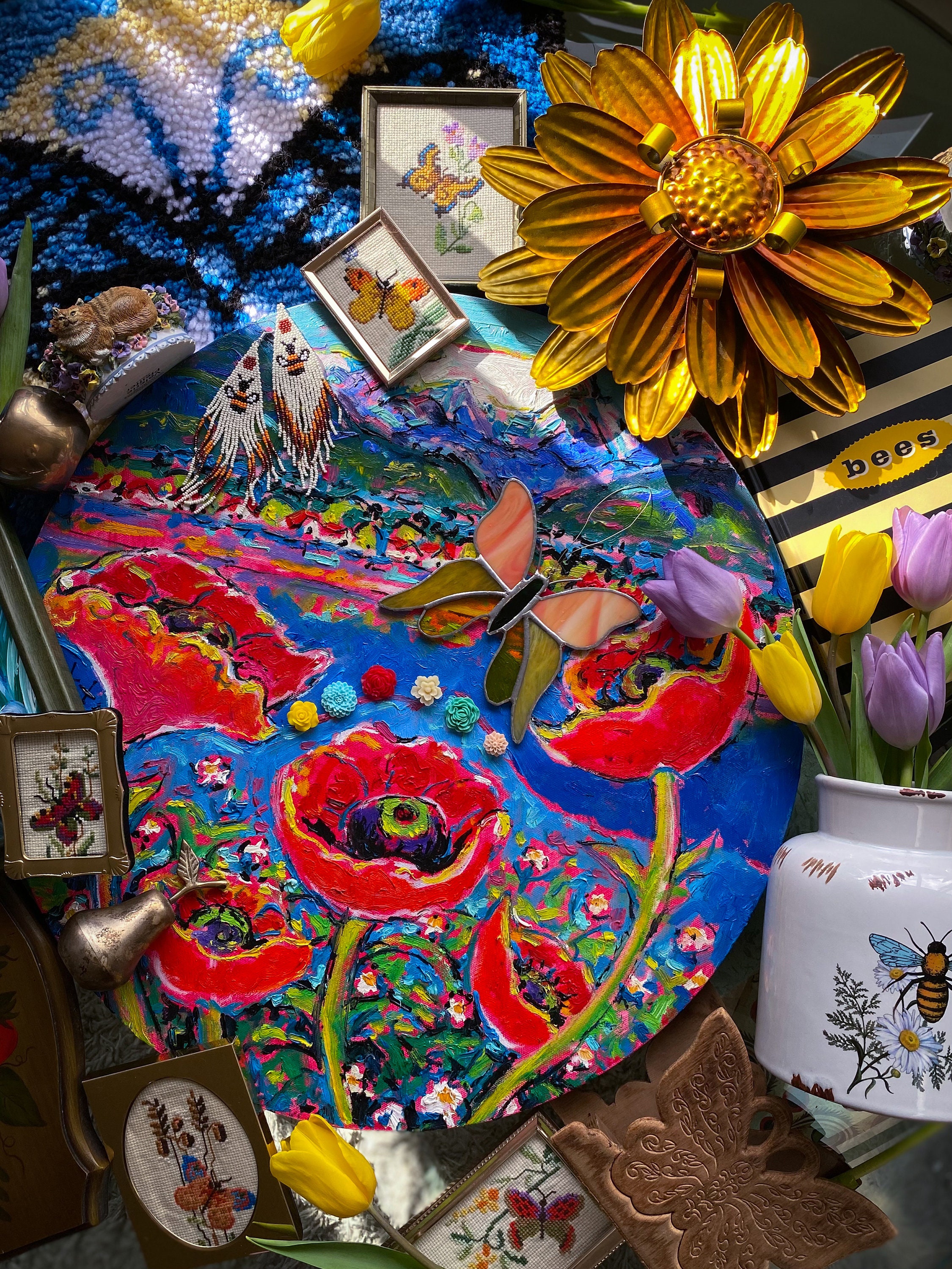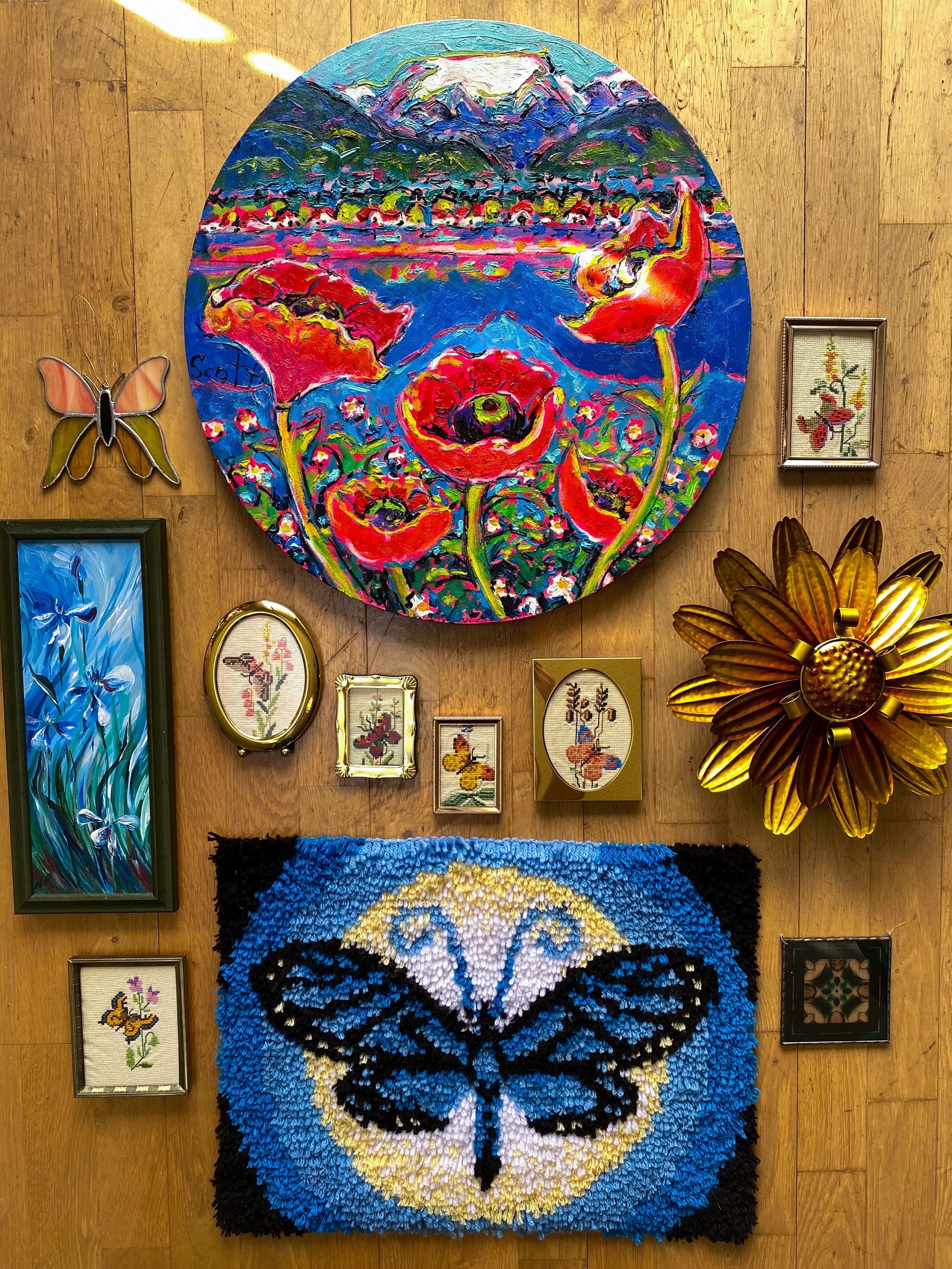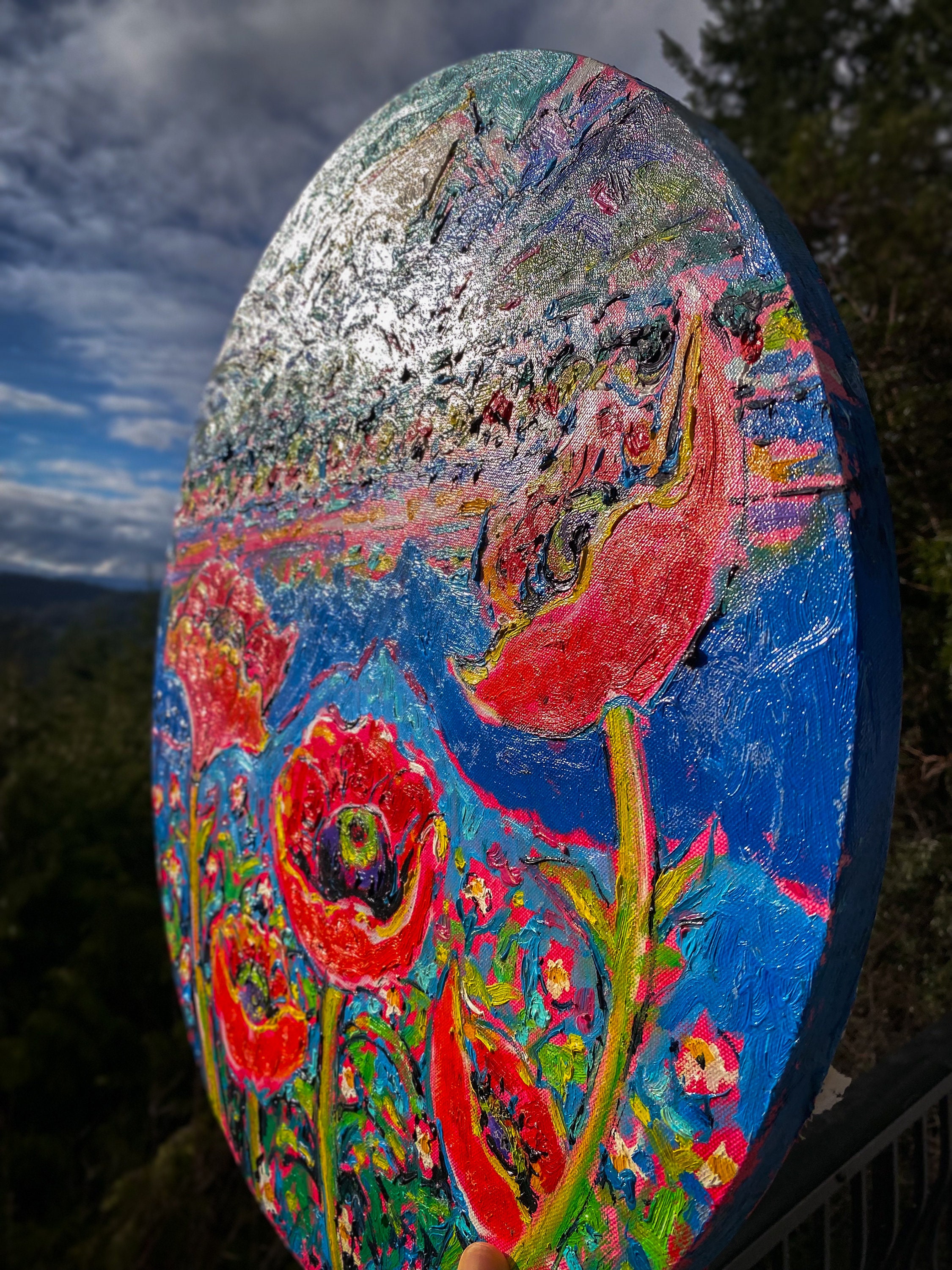 Large original Comox Glacier in Comox Valley, BC painting by local artist Brian Scott. Lots of texture, looks like oils but most likely acrylic. Large round stretched canvas with a wire, ready to hang. These retail for ~$2000!