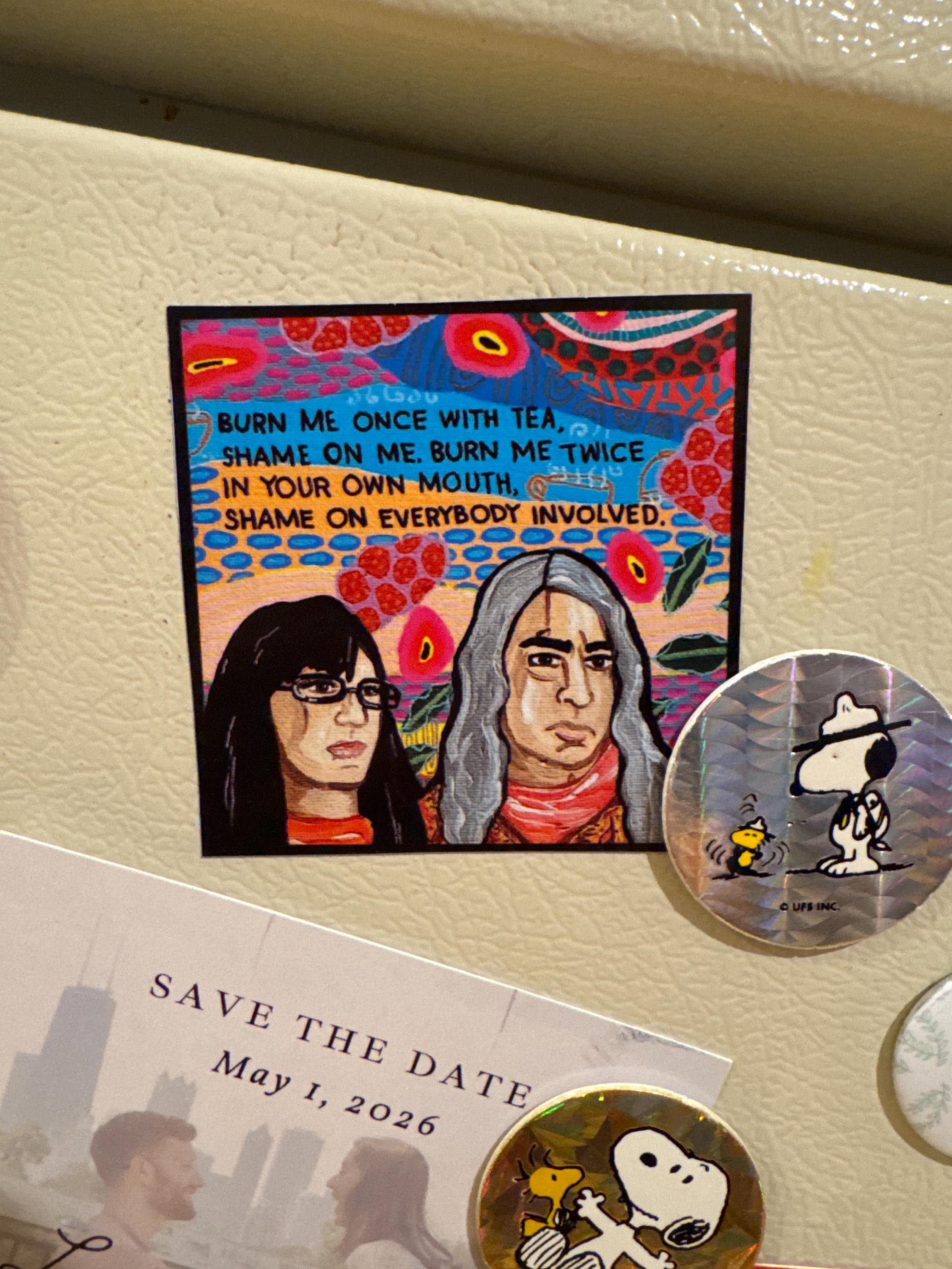 This always-funny Portlandia sketch was originally hand painted in oil and acrylic on canvas, then professionally printed onto a magnetic sheet.