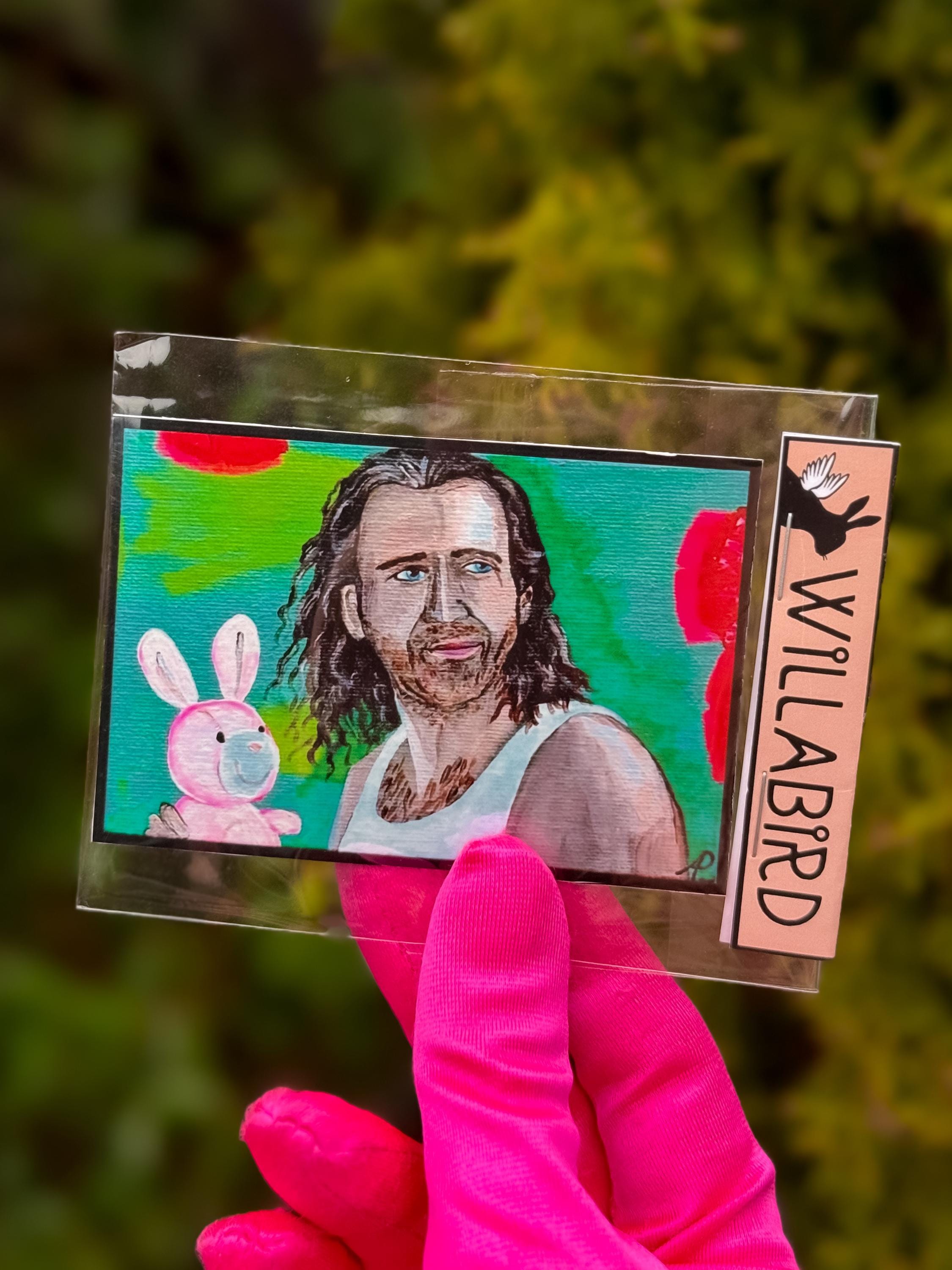 Put the Bunny Back in the Box. Nicholas Cage as Cameron Poe in the cult classic, Con Air. Originally hand painted with acrylic on canvas, then professionally printed onto a magnetic sheet. Original painting has sold.