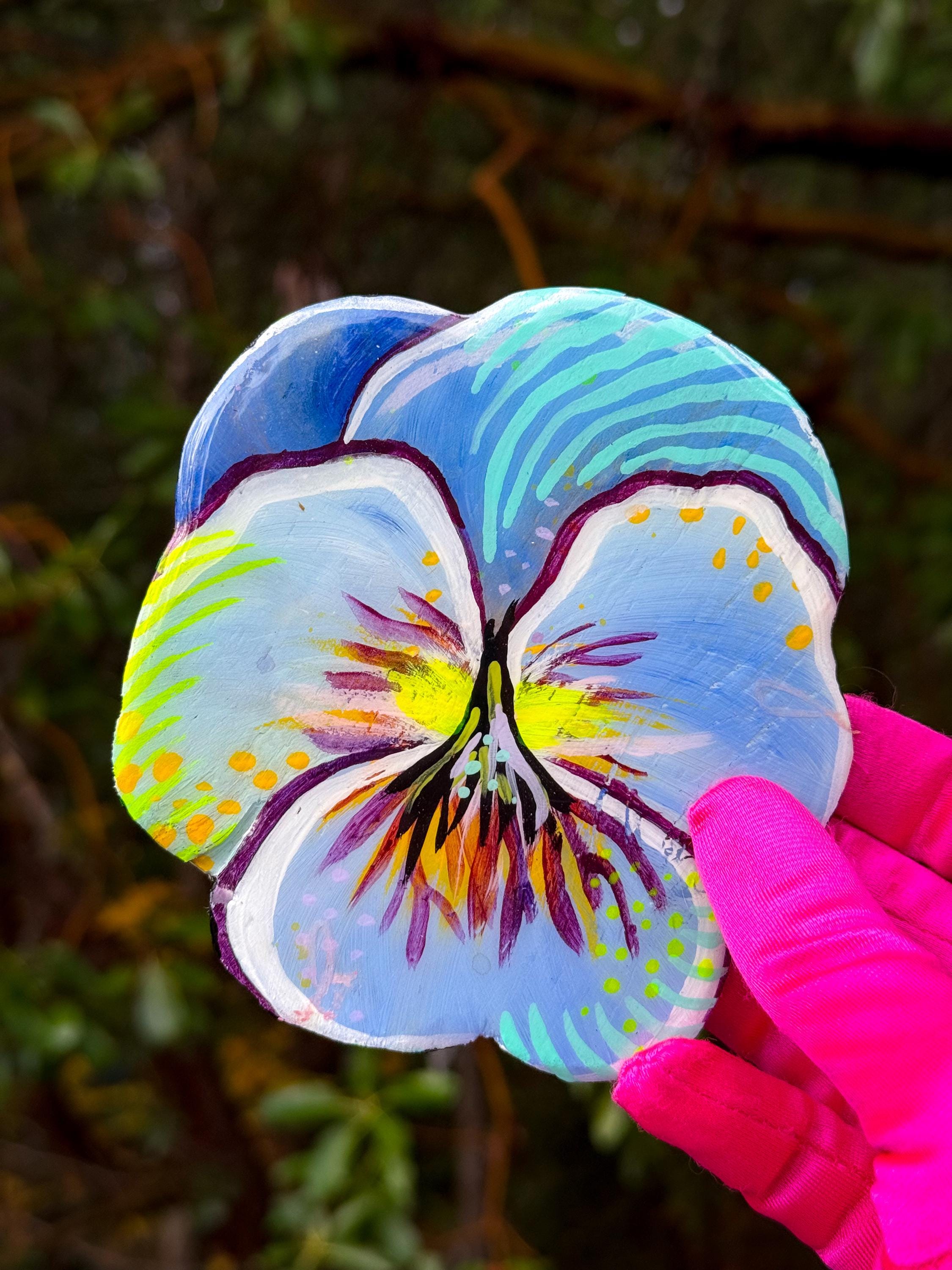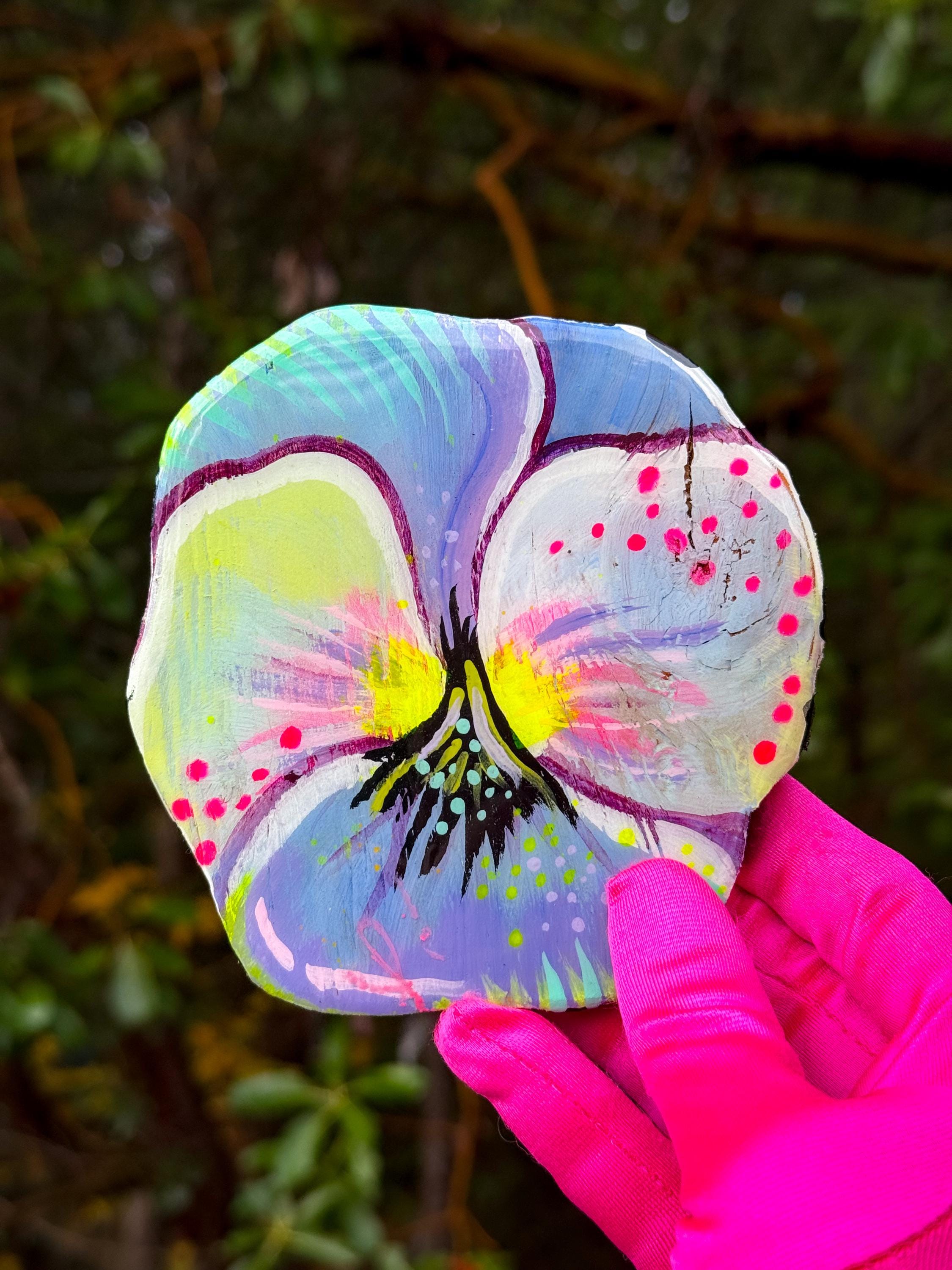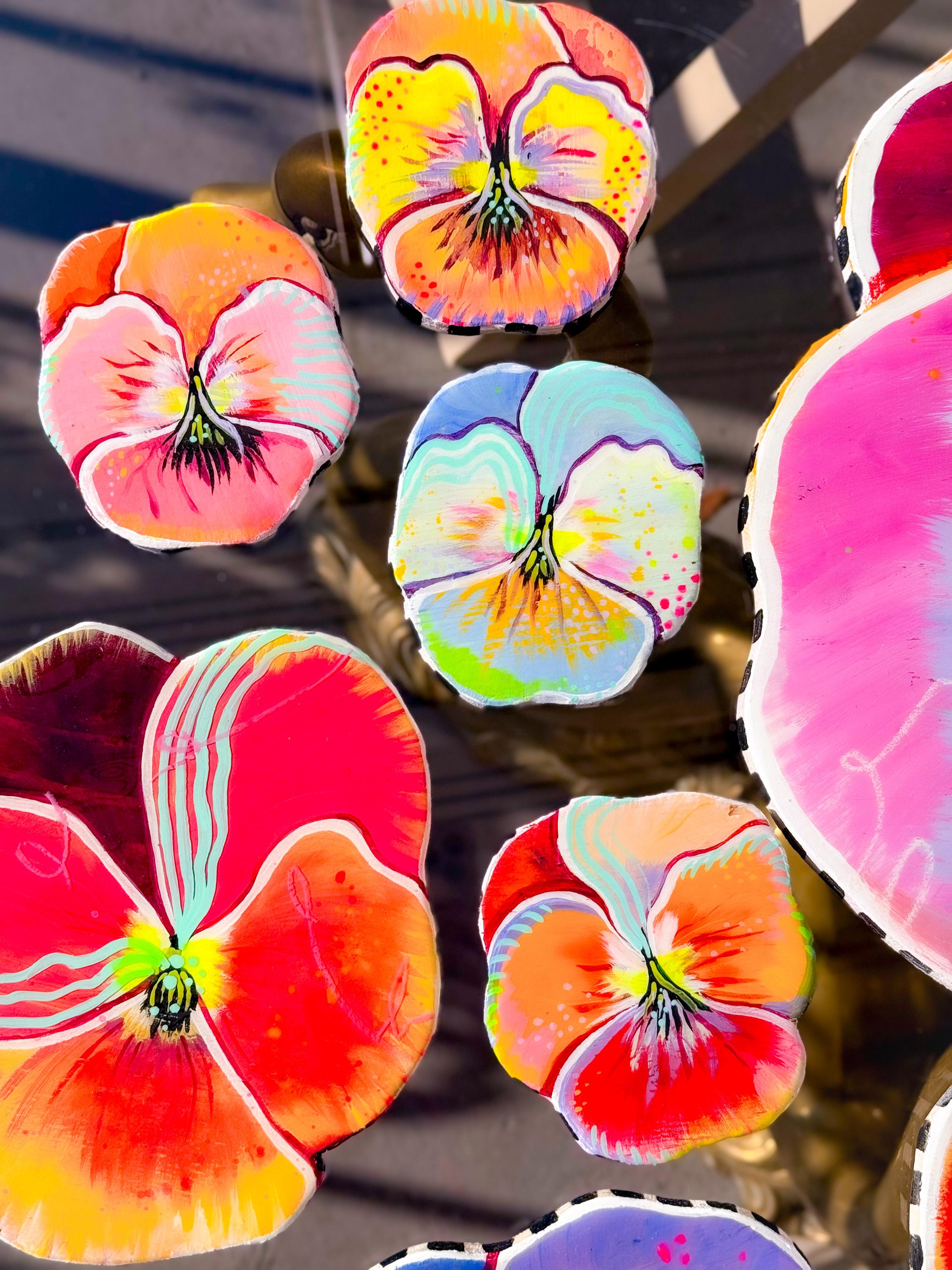 Handpainted Wood Wall Art – Pansies by Amber Petersen for Willabird Designs