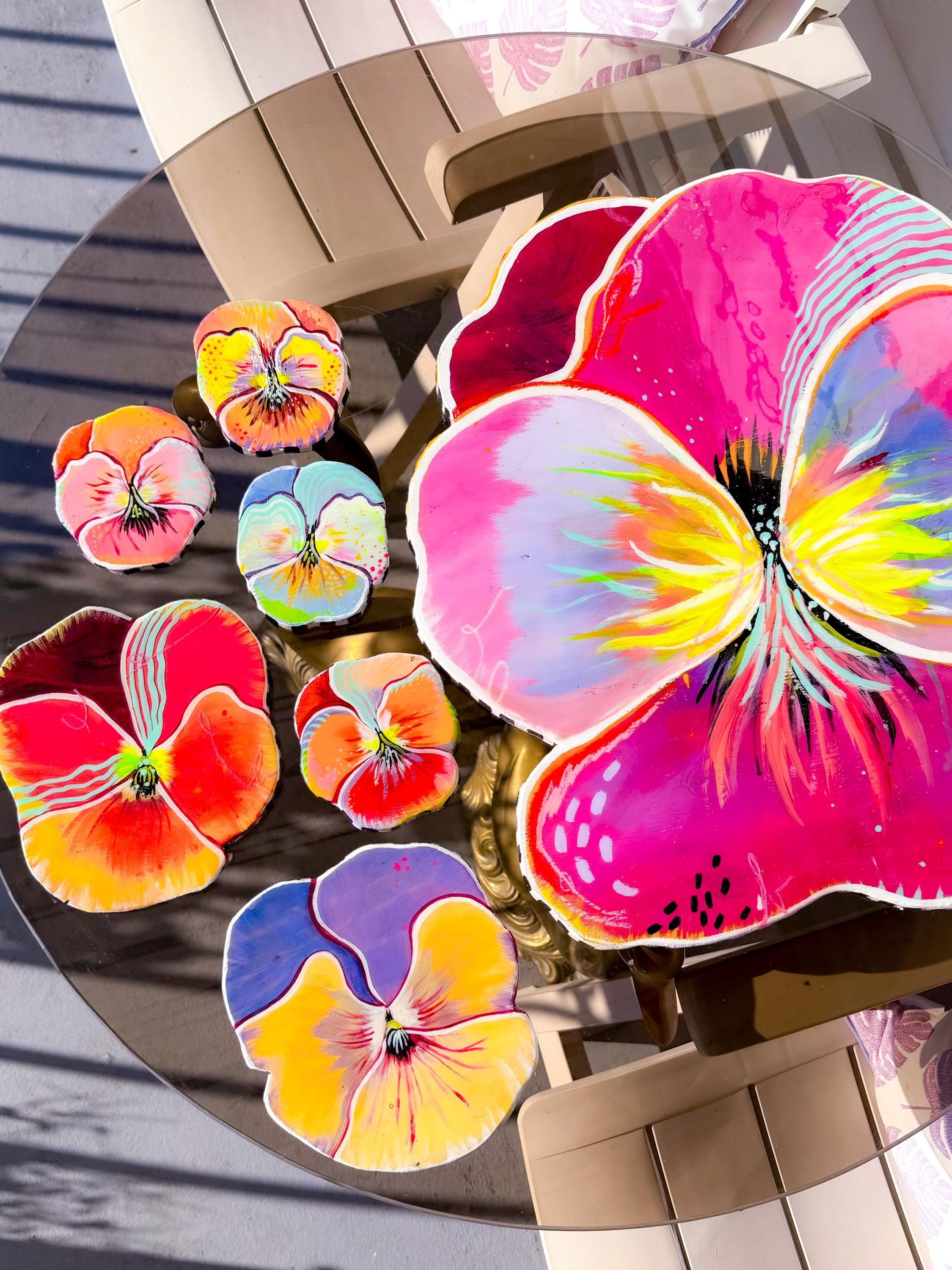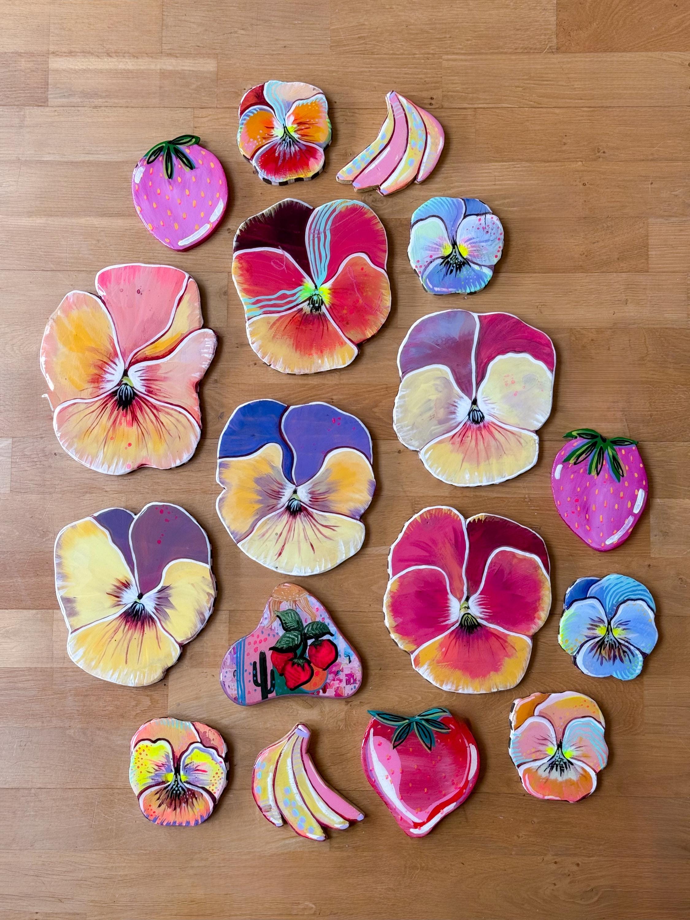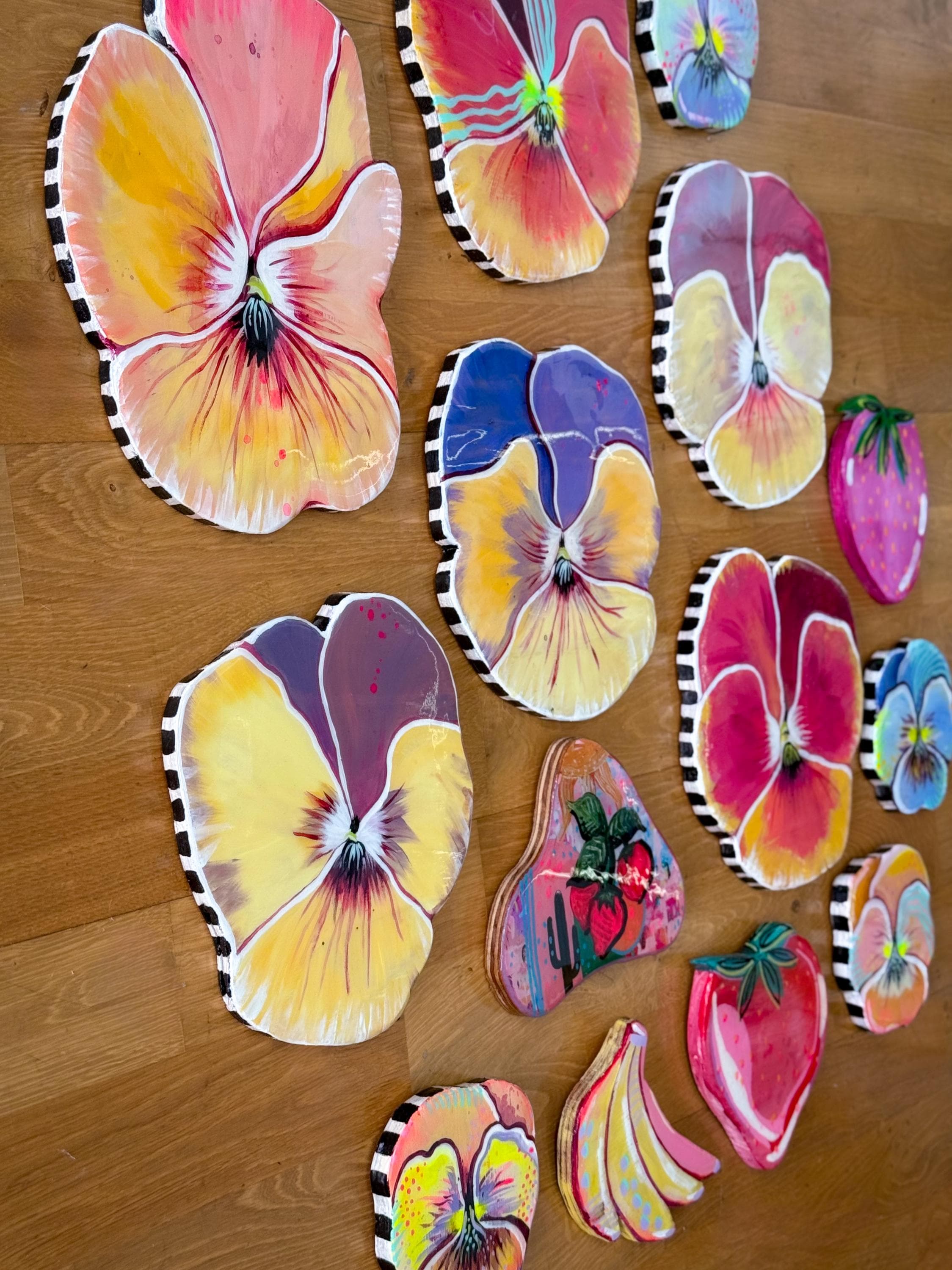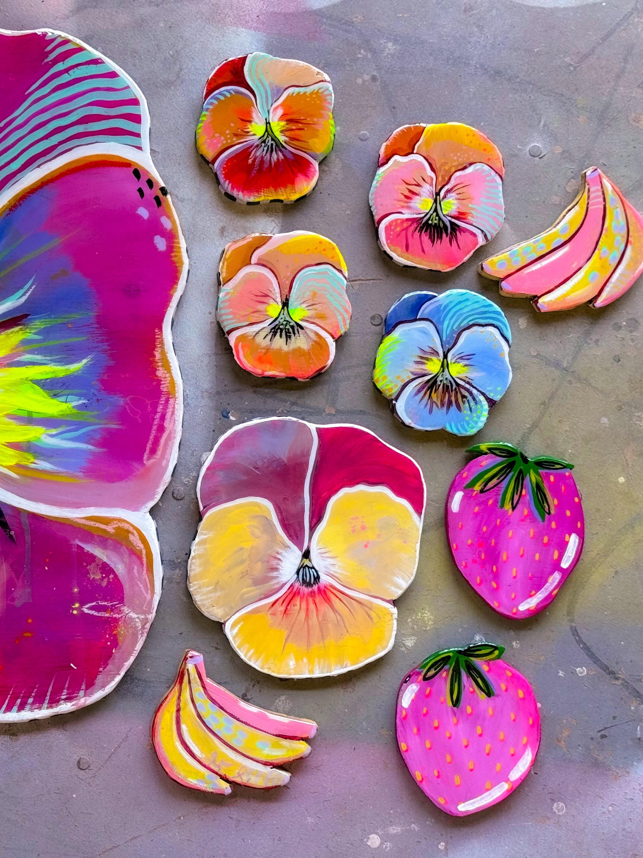 Bring color and joy to your space with these one-of-a-kind, hand-painted wood wall hangings! Each piece is handmade by me, making every flower and fruit totally unique. From sketching them out to hand cutting each shape, sanding, sealing, painting, varnishing, and finishing them with multiple layers of art resin for a glass-like finish. The process is long, but the product is made with love on the Sunshine Coast, BC.