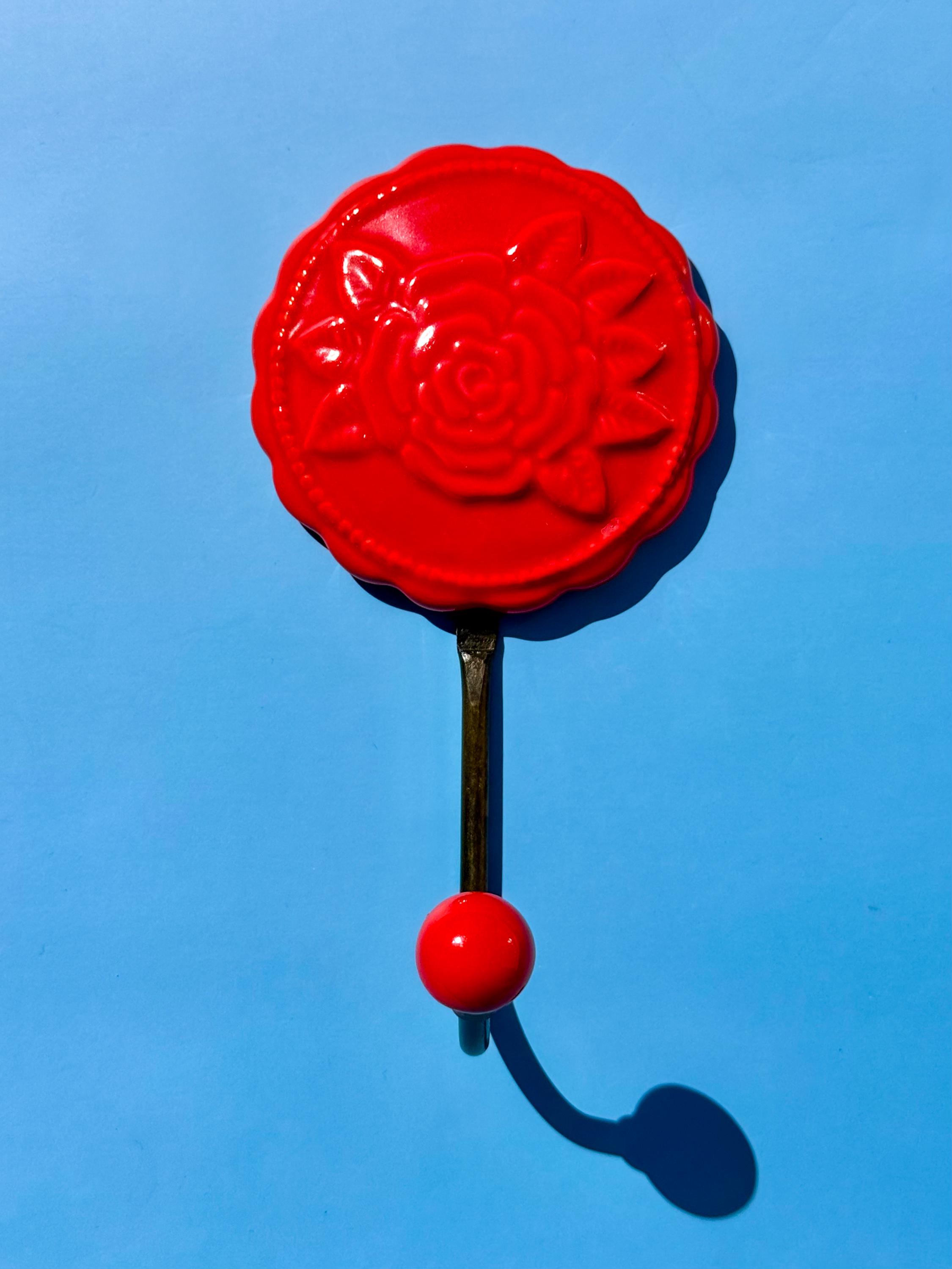 D- Glazed ceramic & metal wall hook. Gorgeous red rose ceramic with no chips or cracks. 3.5 x 6.5 inches