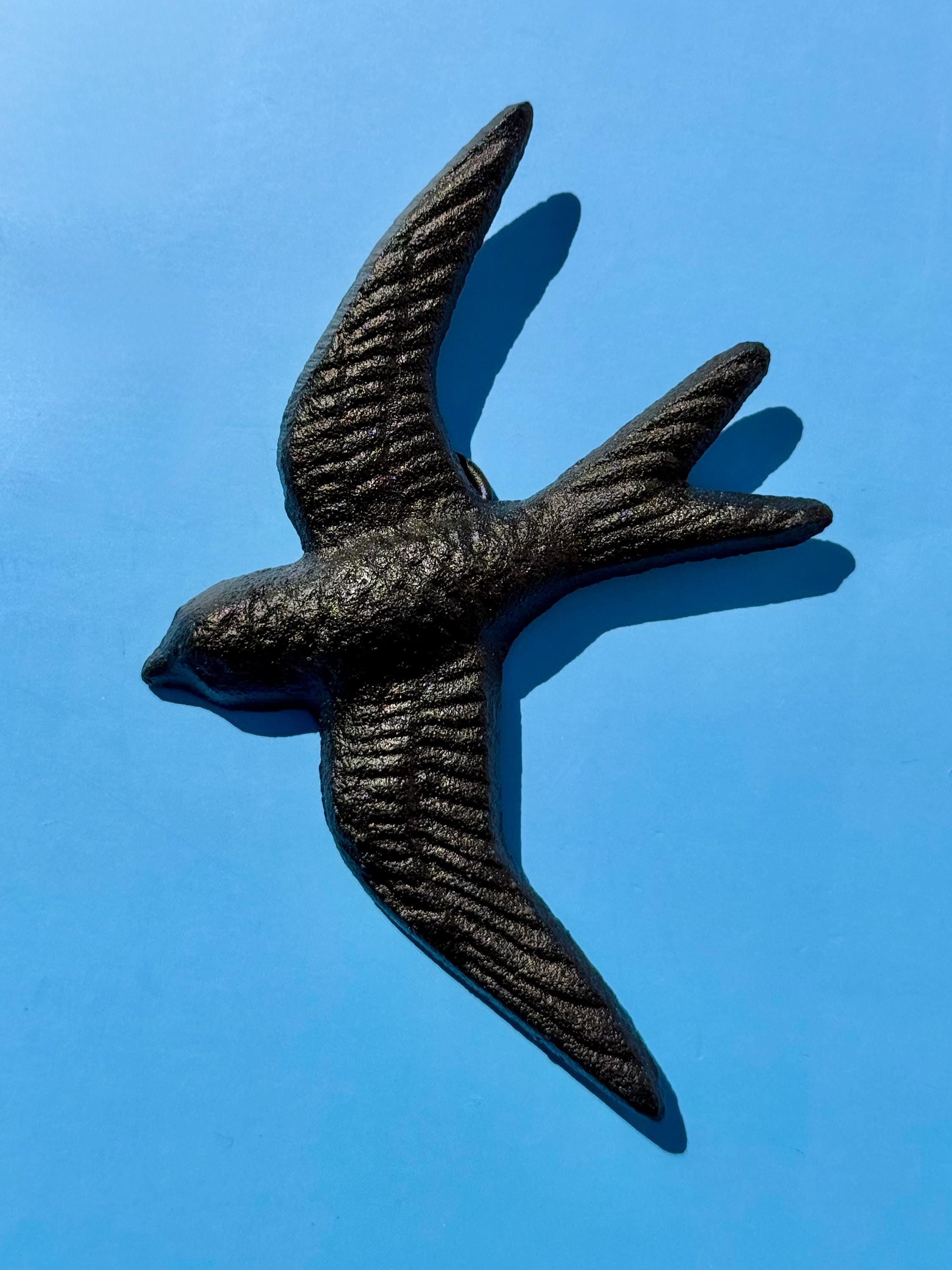 C- Cast iron swallow. With a hook to hang. 4 x 5 inches