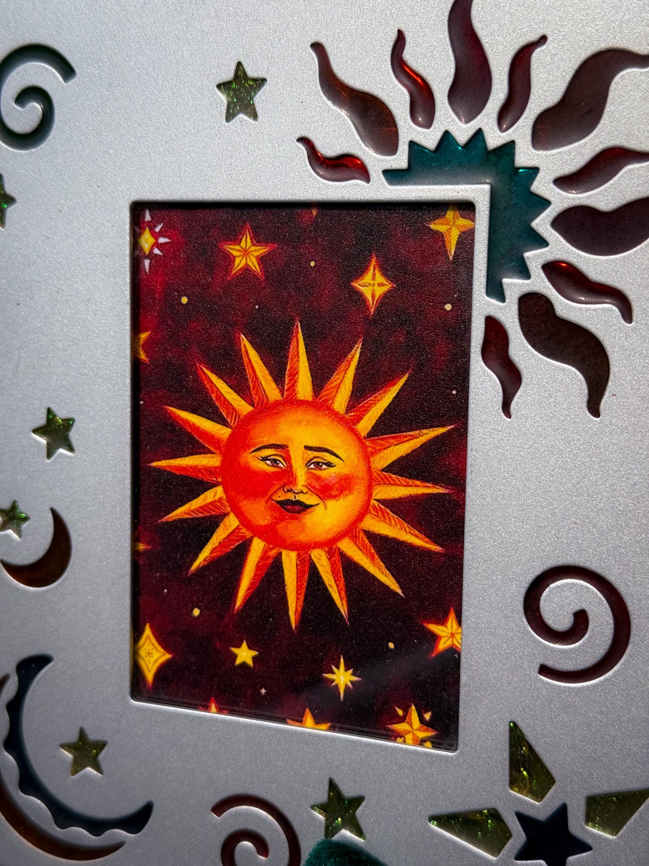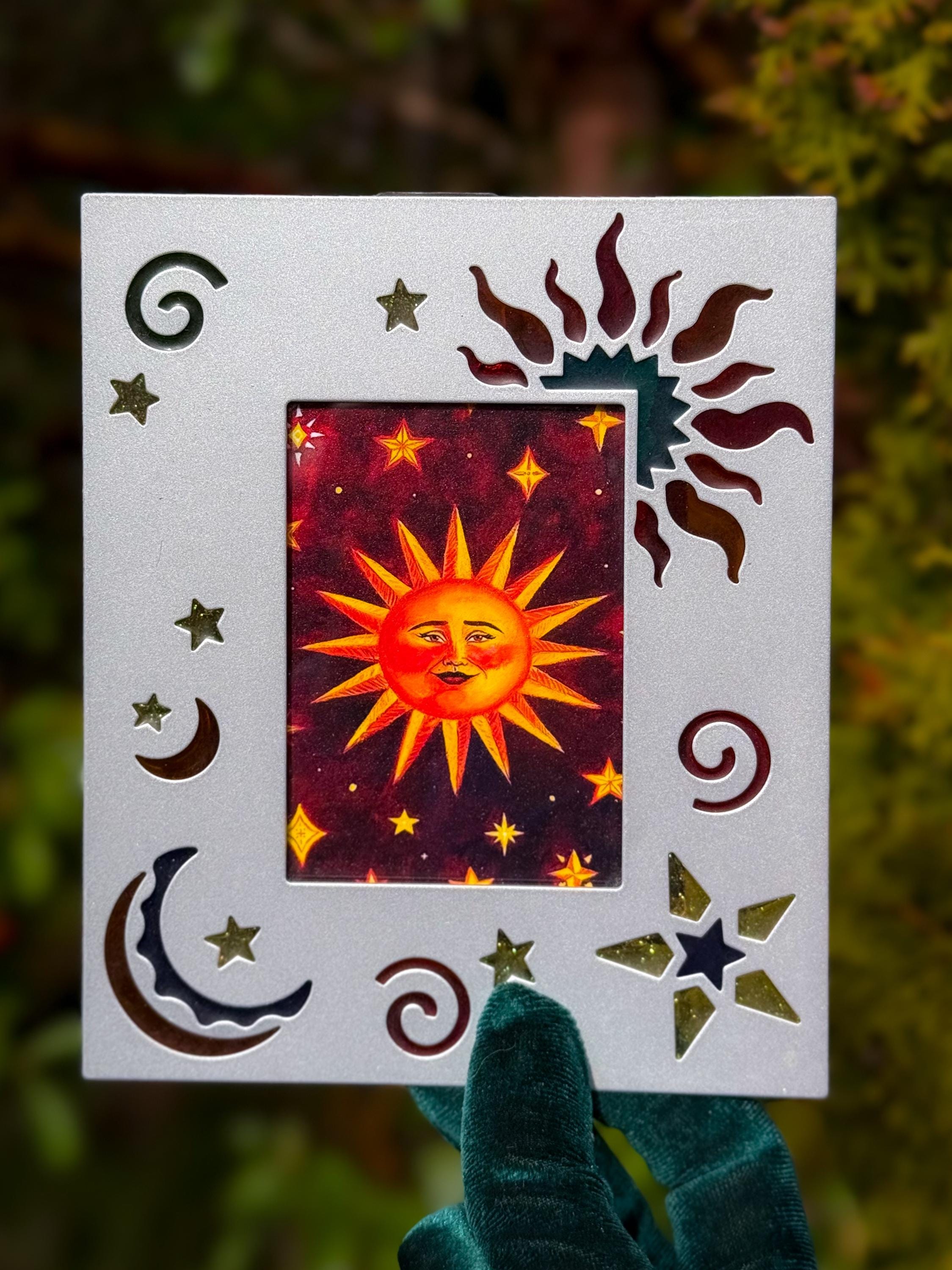 Summon a bit of 90’s celestial magic for your walls with this Whimsigoth-inspired gallery wall set — a moody, romantic collection of vintage framed prints & wall hangings, thoughtfully arranged and paired with a detailed hanging blueprint for effortless decorating. Just tape up the blueprint where you want it, hammer picture nails through the orange dots, rip off the blueprint, & hang matching letters to the wall. Designed to create a perfectly balanced wall — without the guesswork.