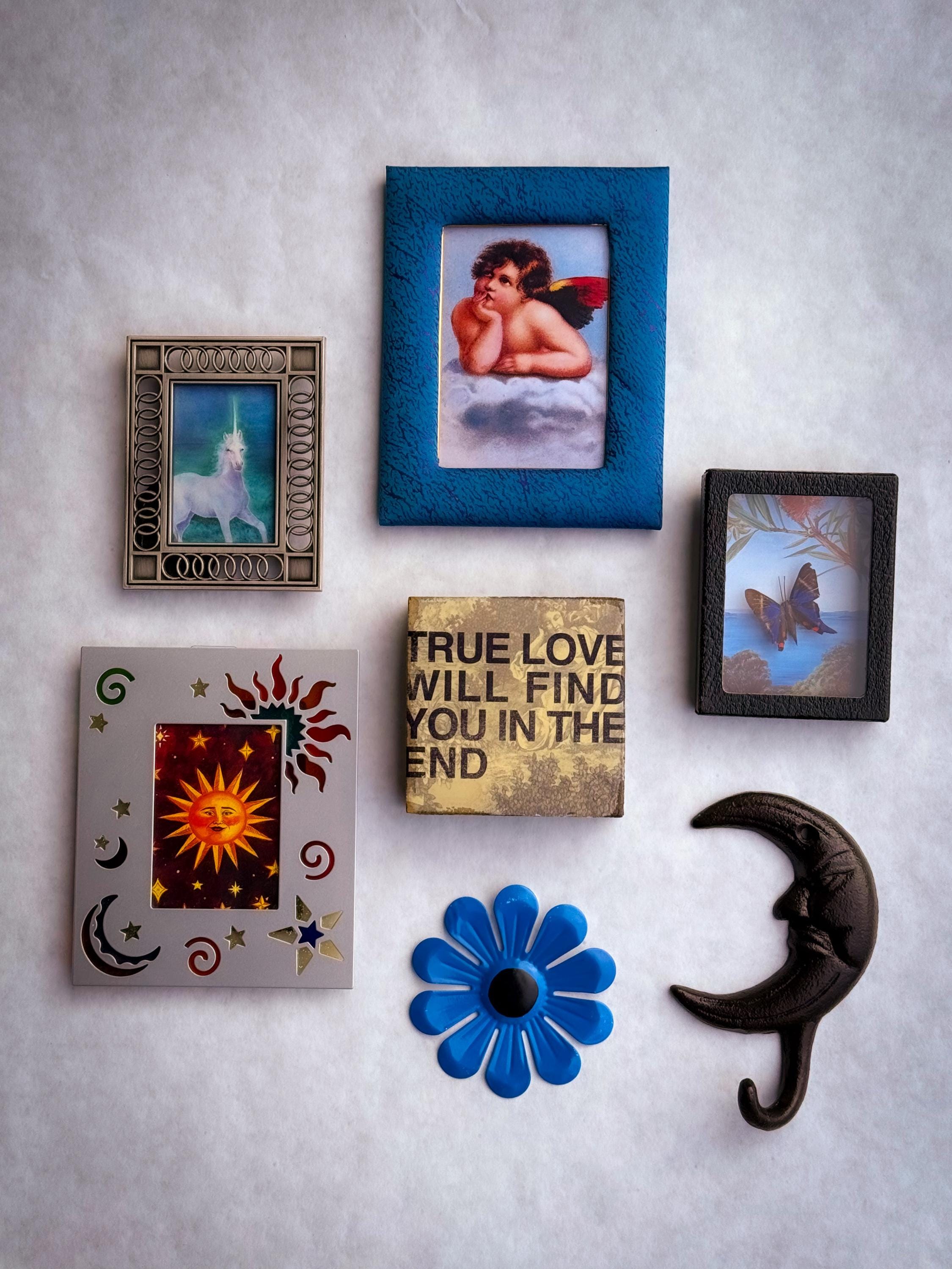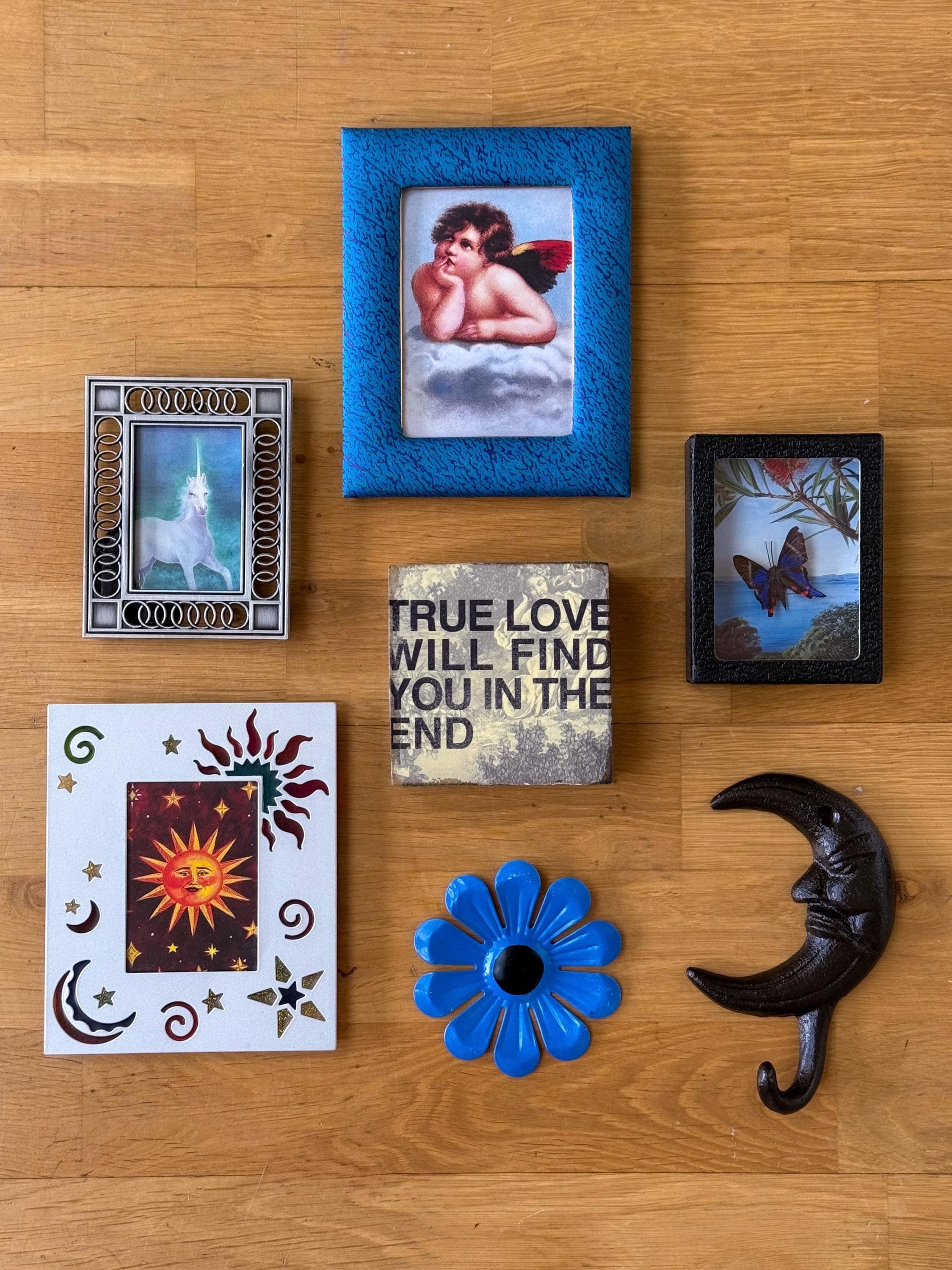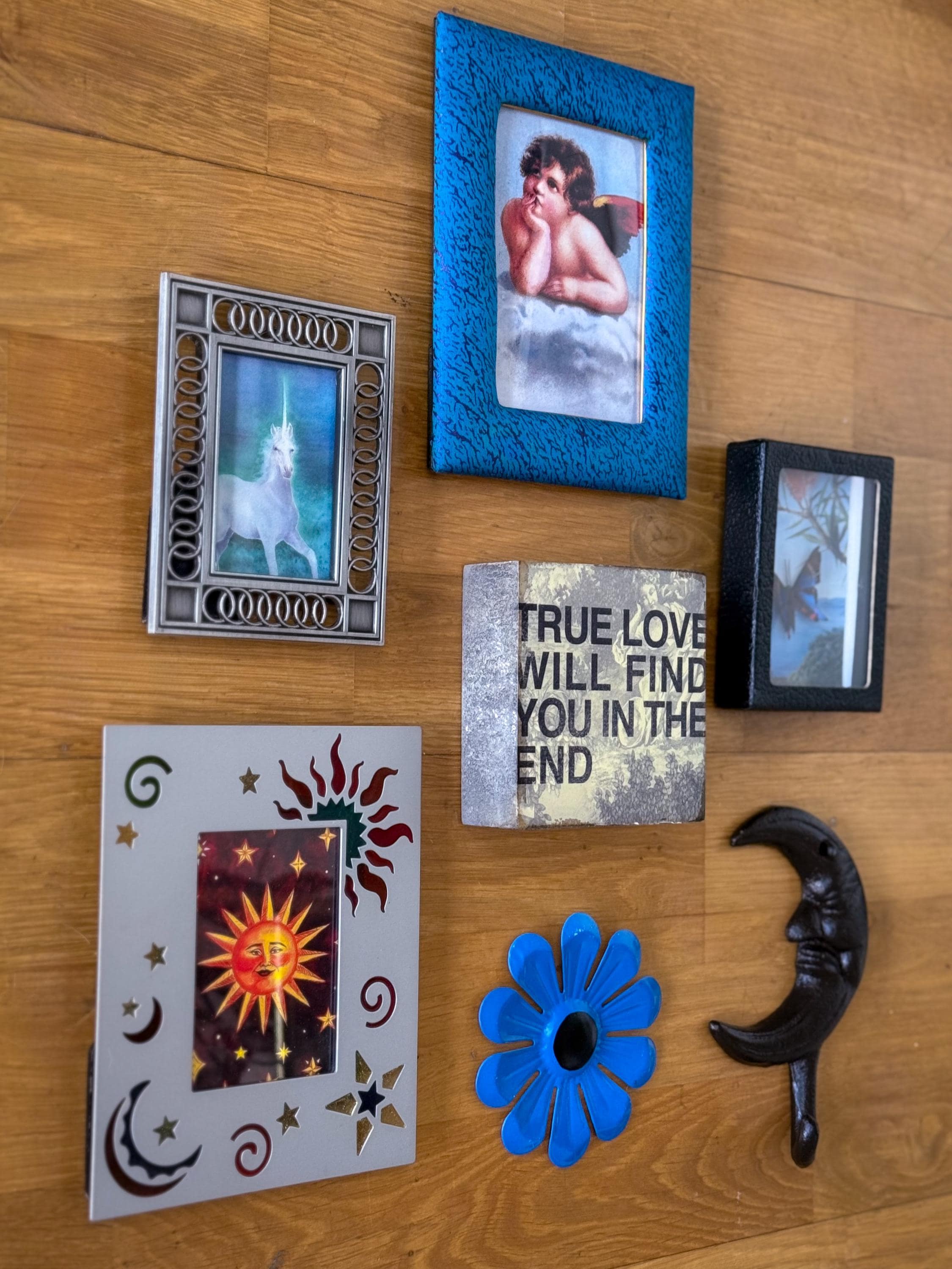 All frames, prints, & hangings are sourced from thrift, estate sales, private sales.
