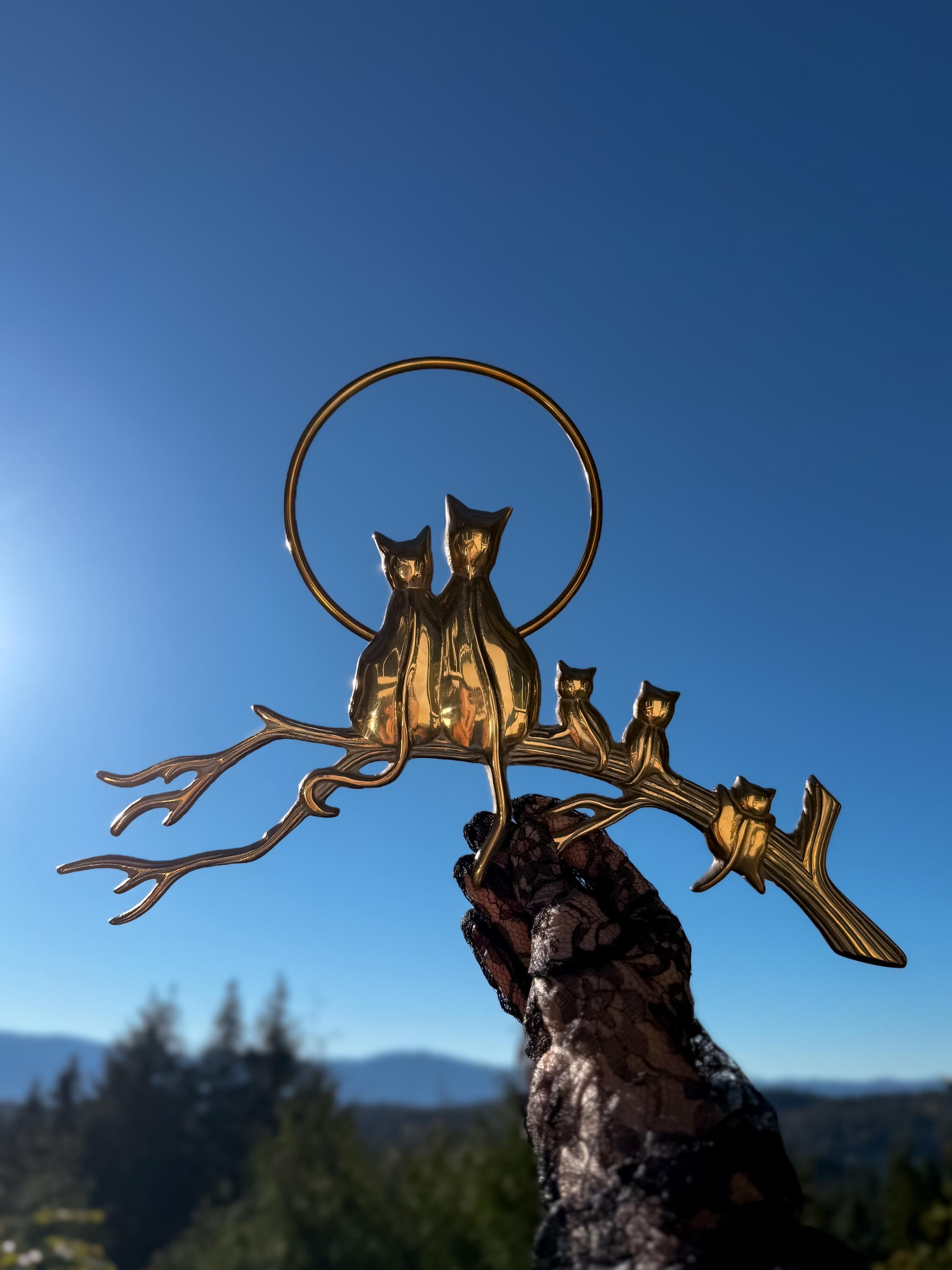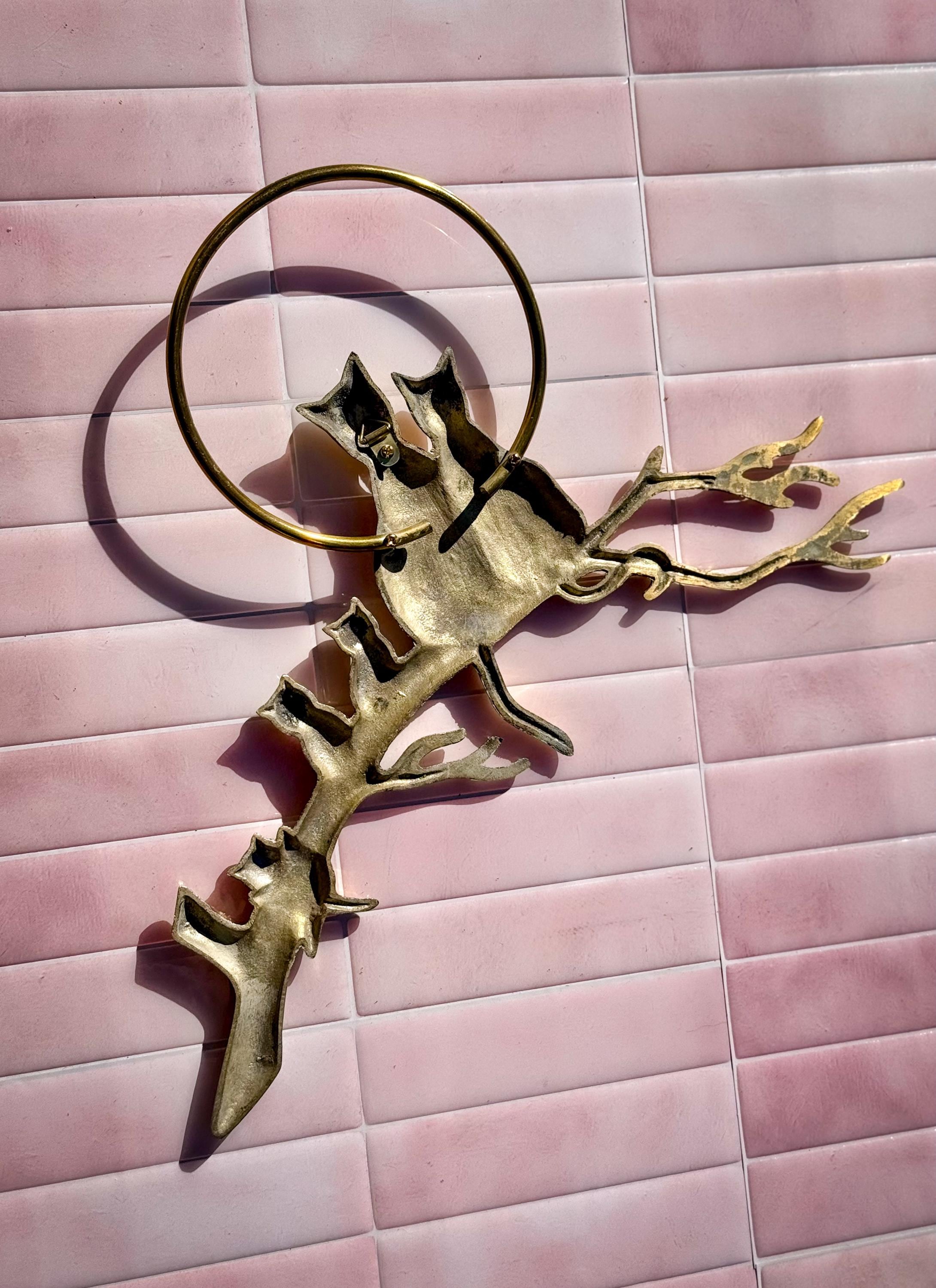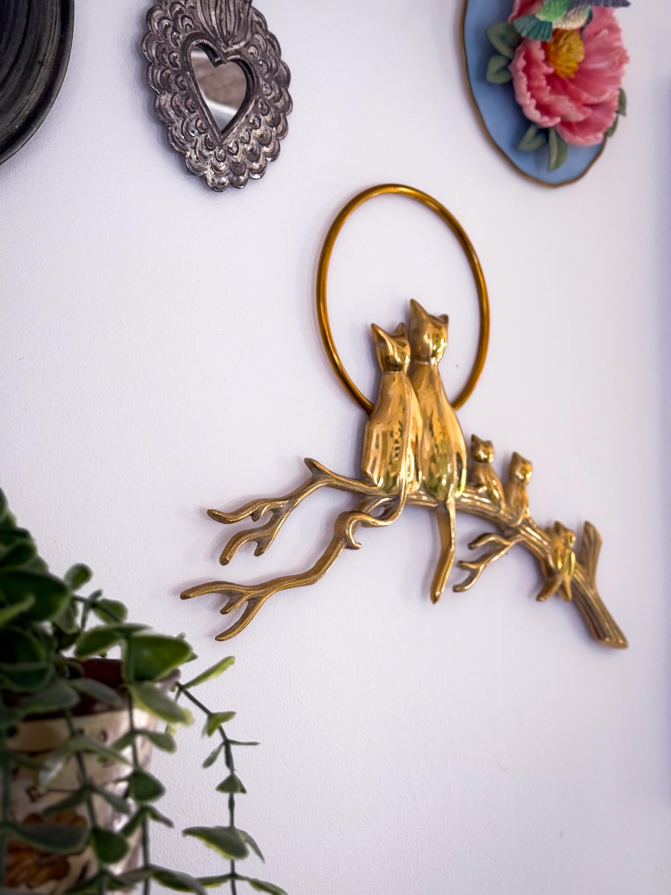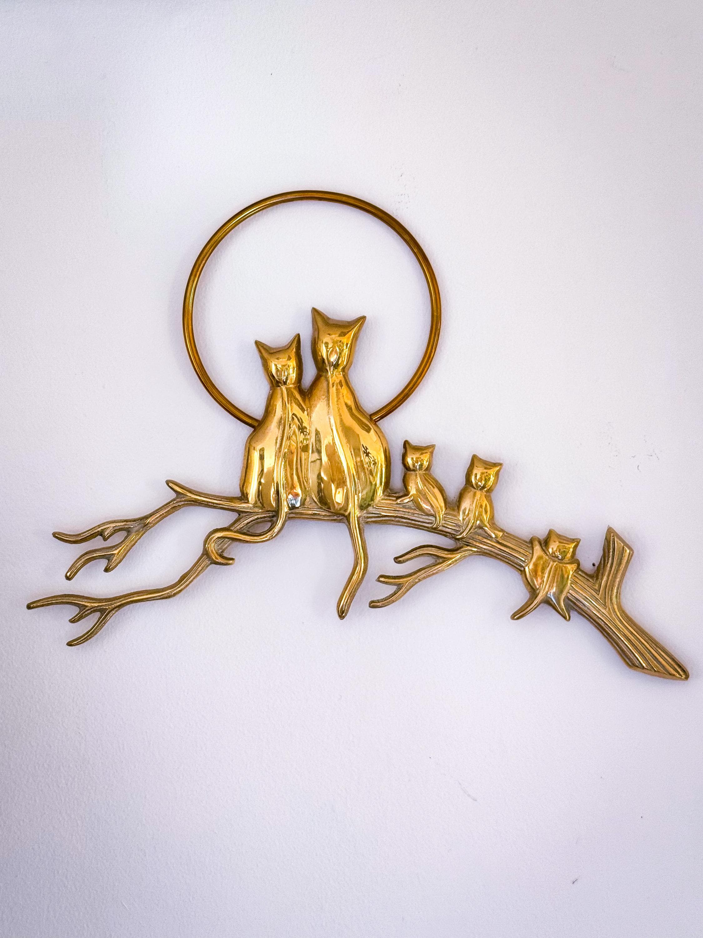 Epic mid century cats-on-a-branch wall hanging. A classic! Weighty brass with a hook to hang, in great condition with some light patina.