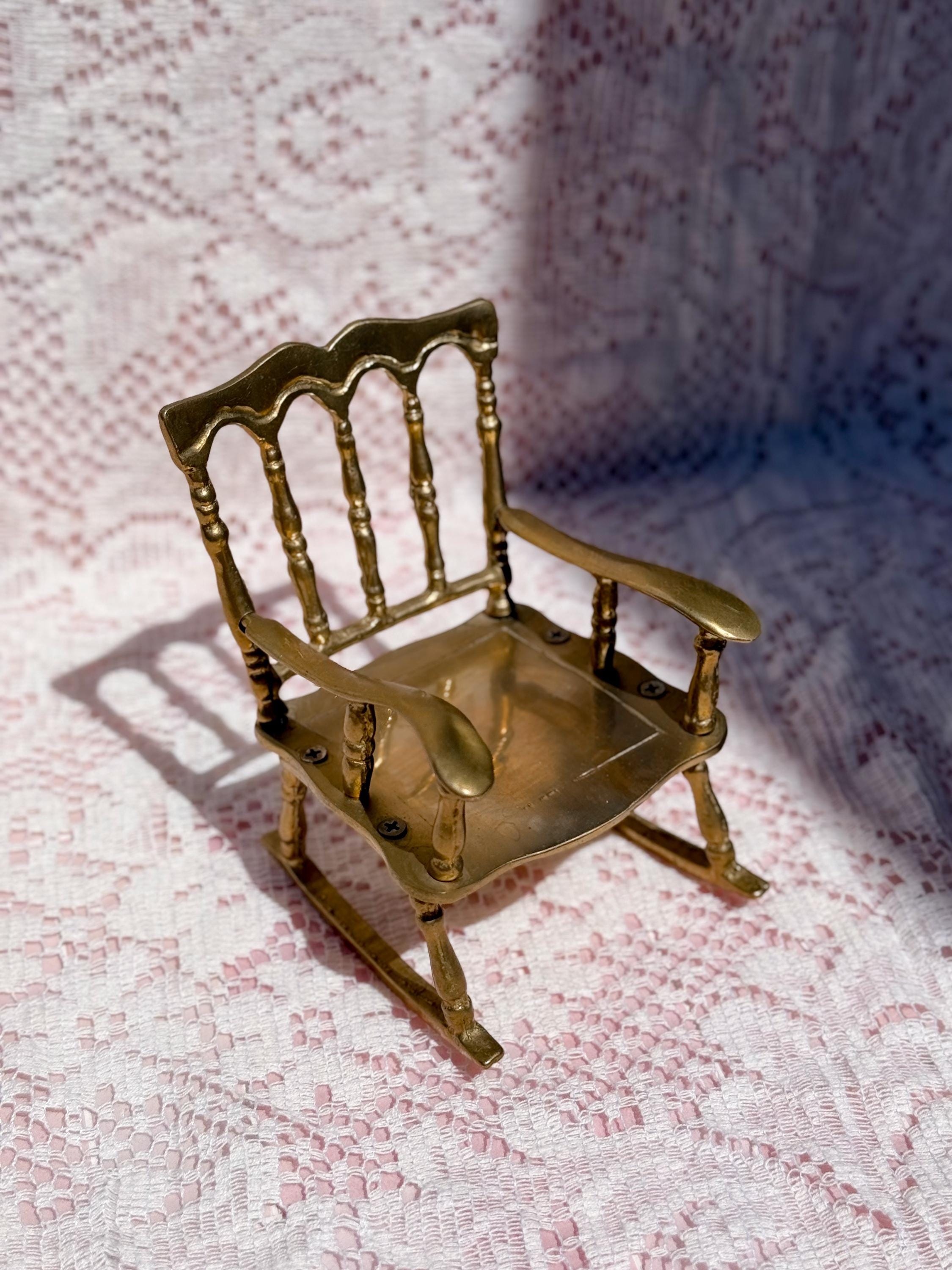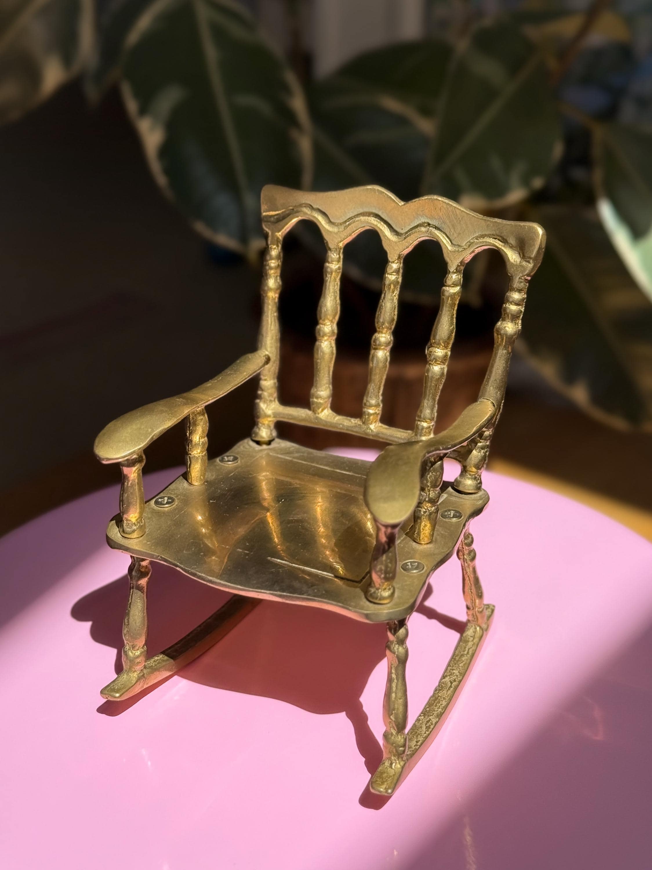 Mid century solid brass rocking chair. This would make the cutest cottagecore miniature plant stand. It actually rocks, too.