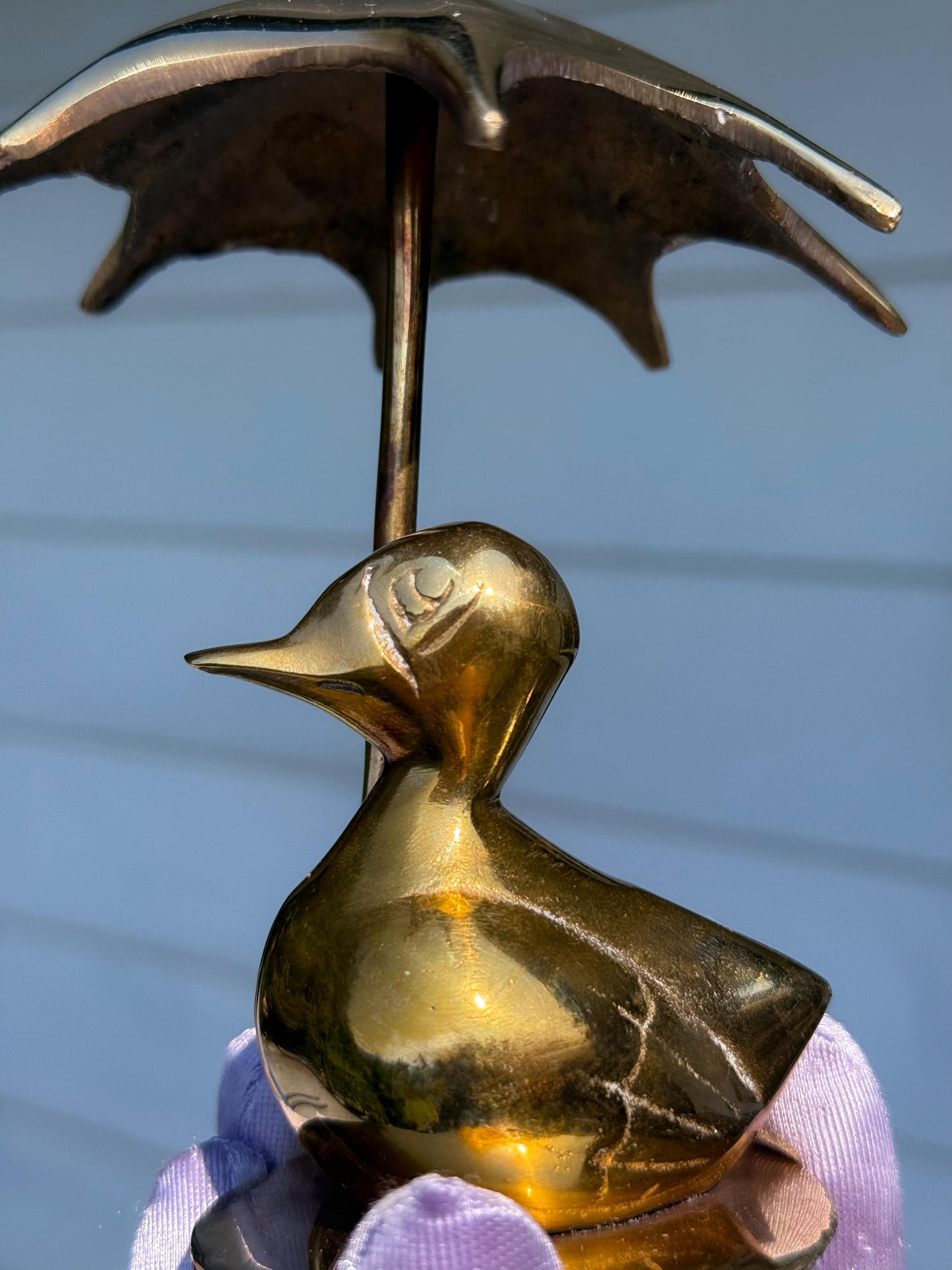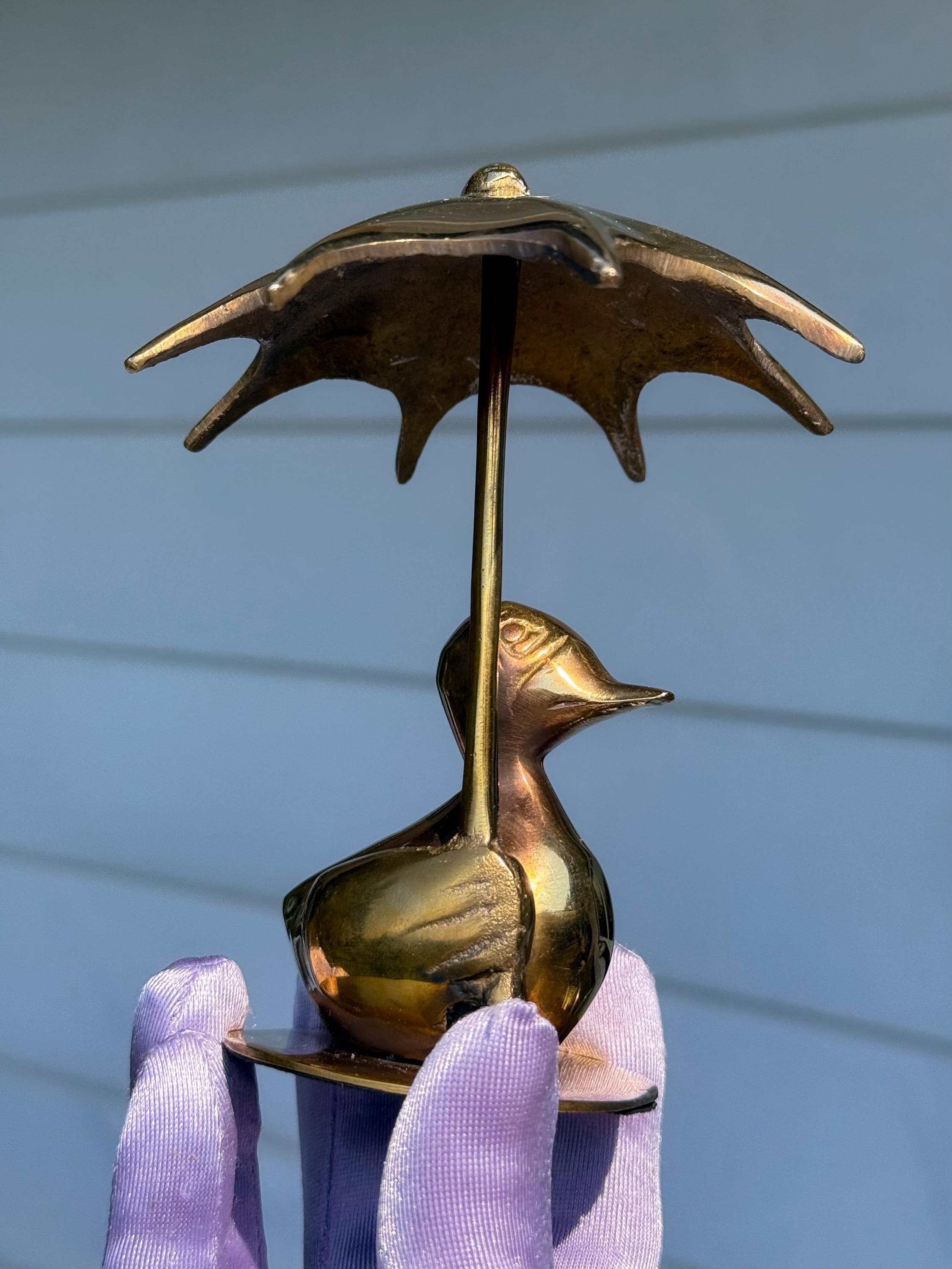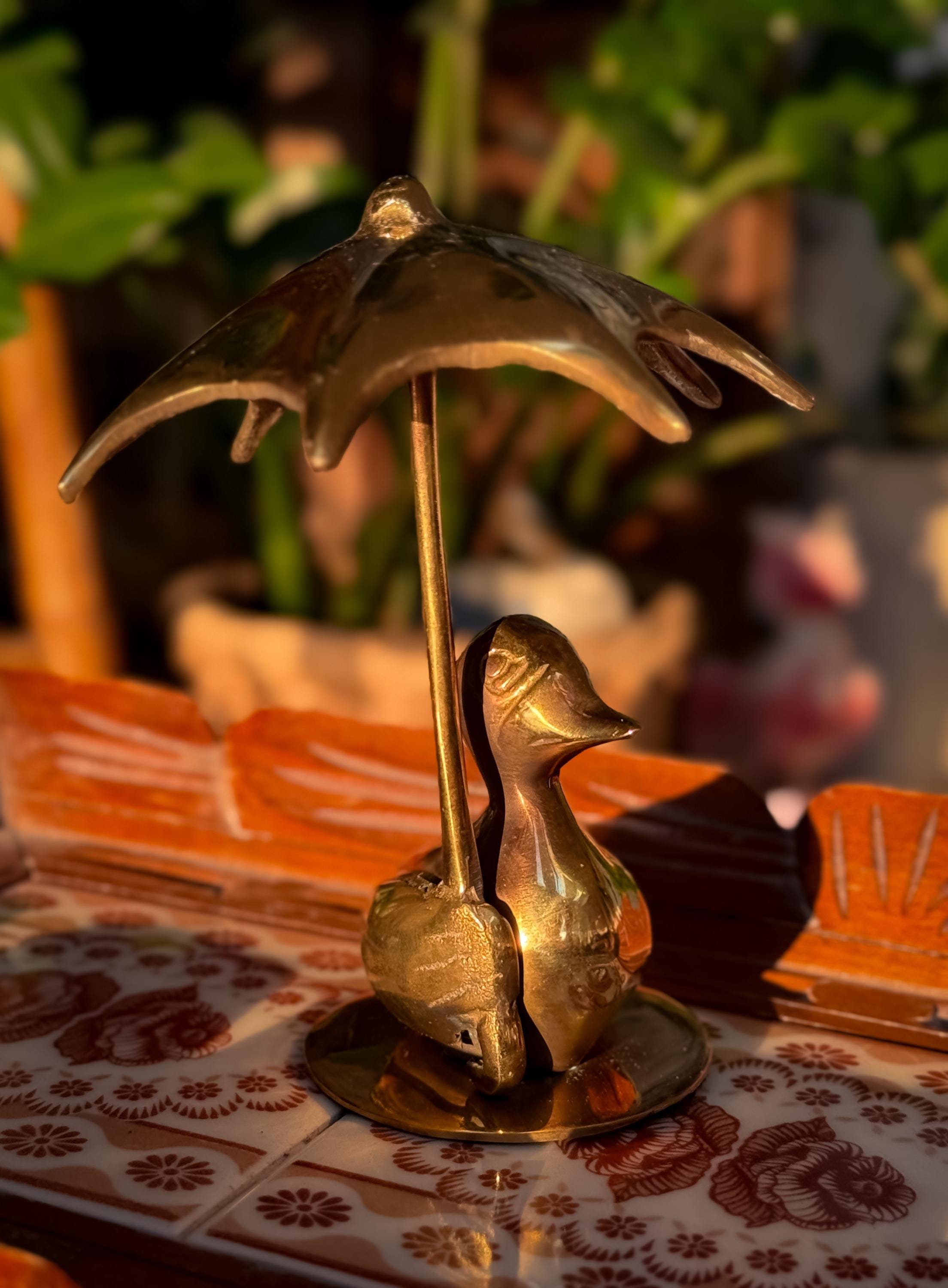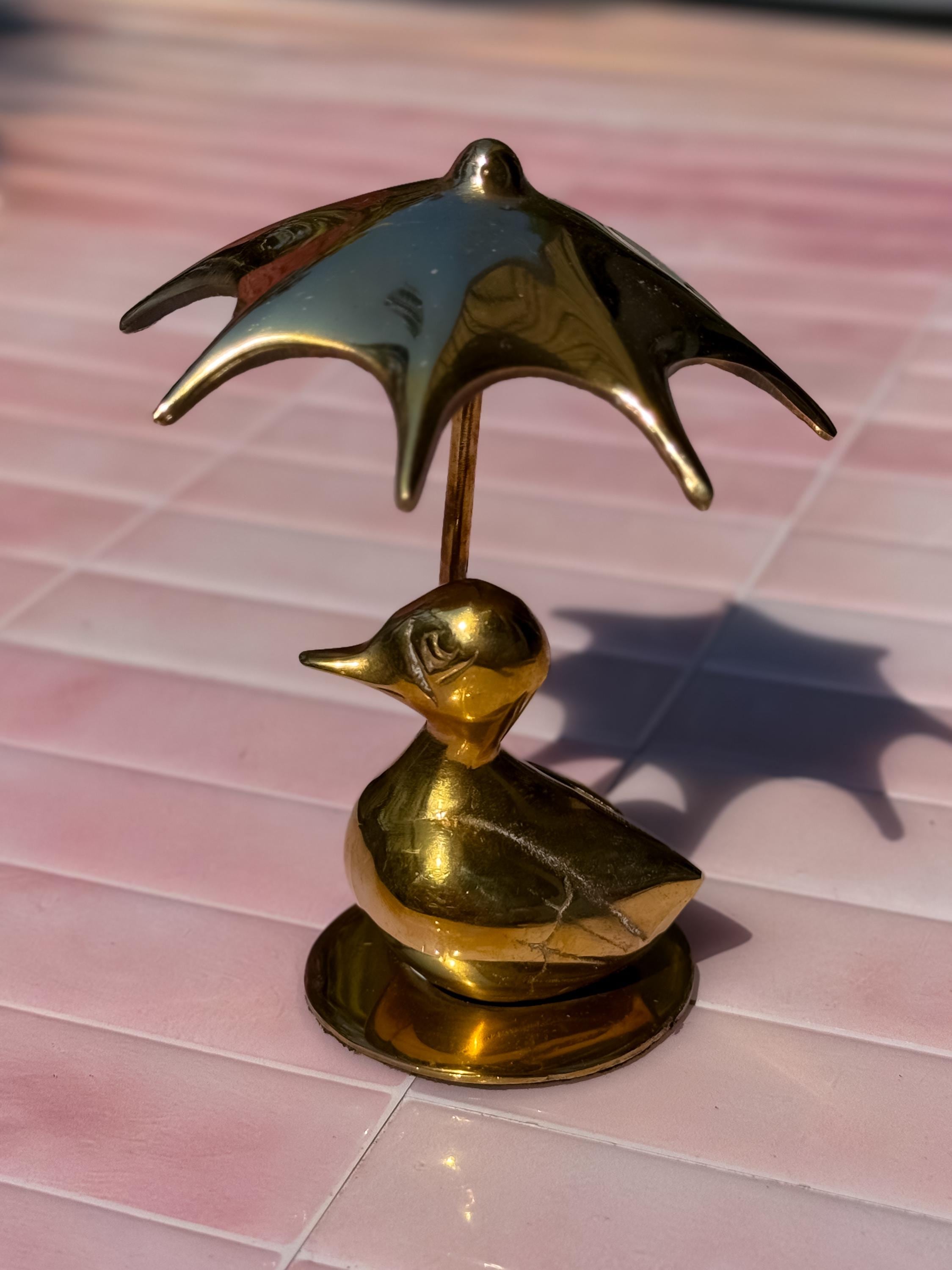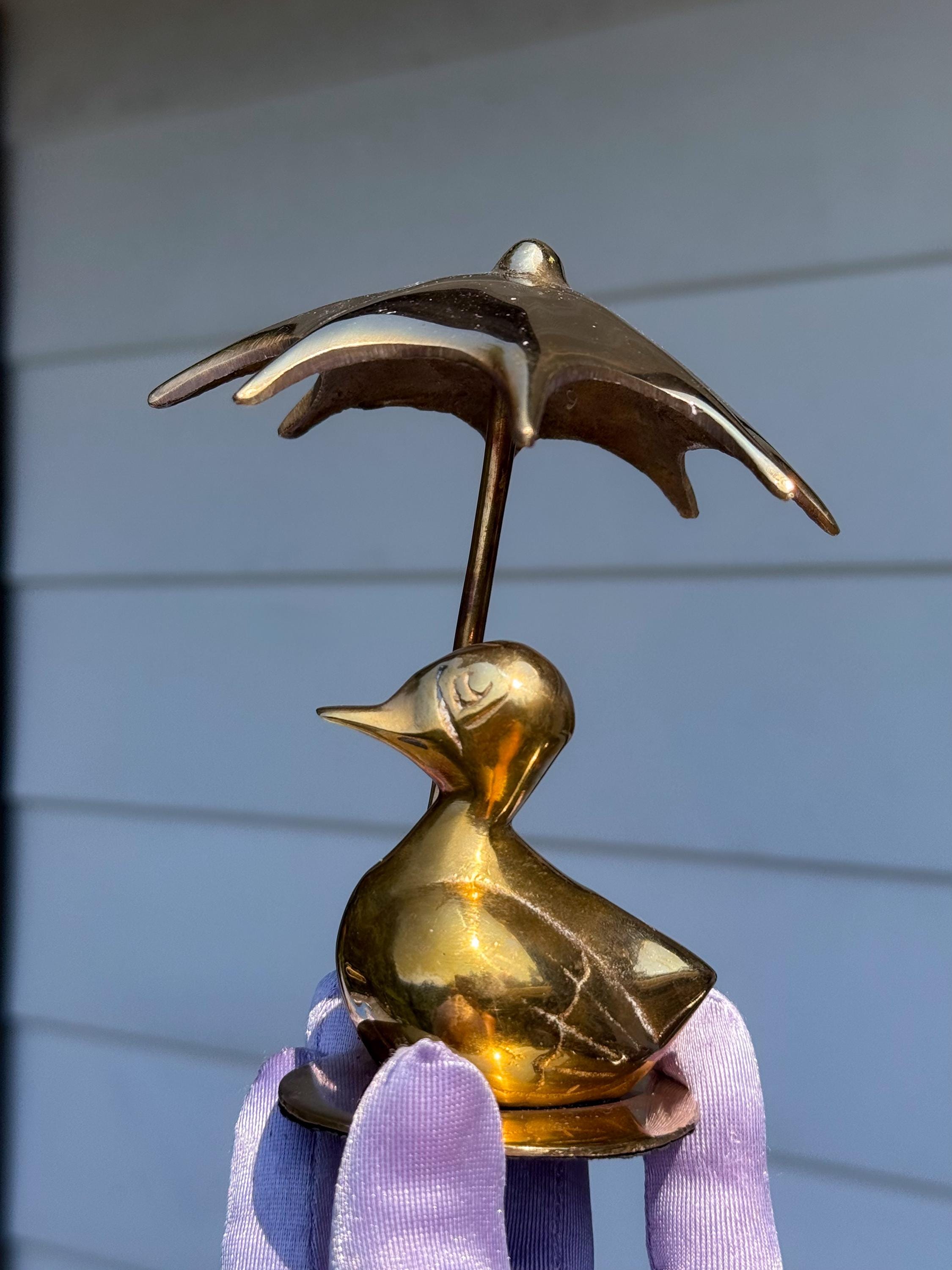 Always a Mid Century classic- the solid brass rainy day duck with umbrella. This cutie is in really fabulous condition with very light patina.
