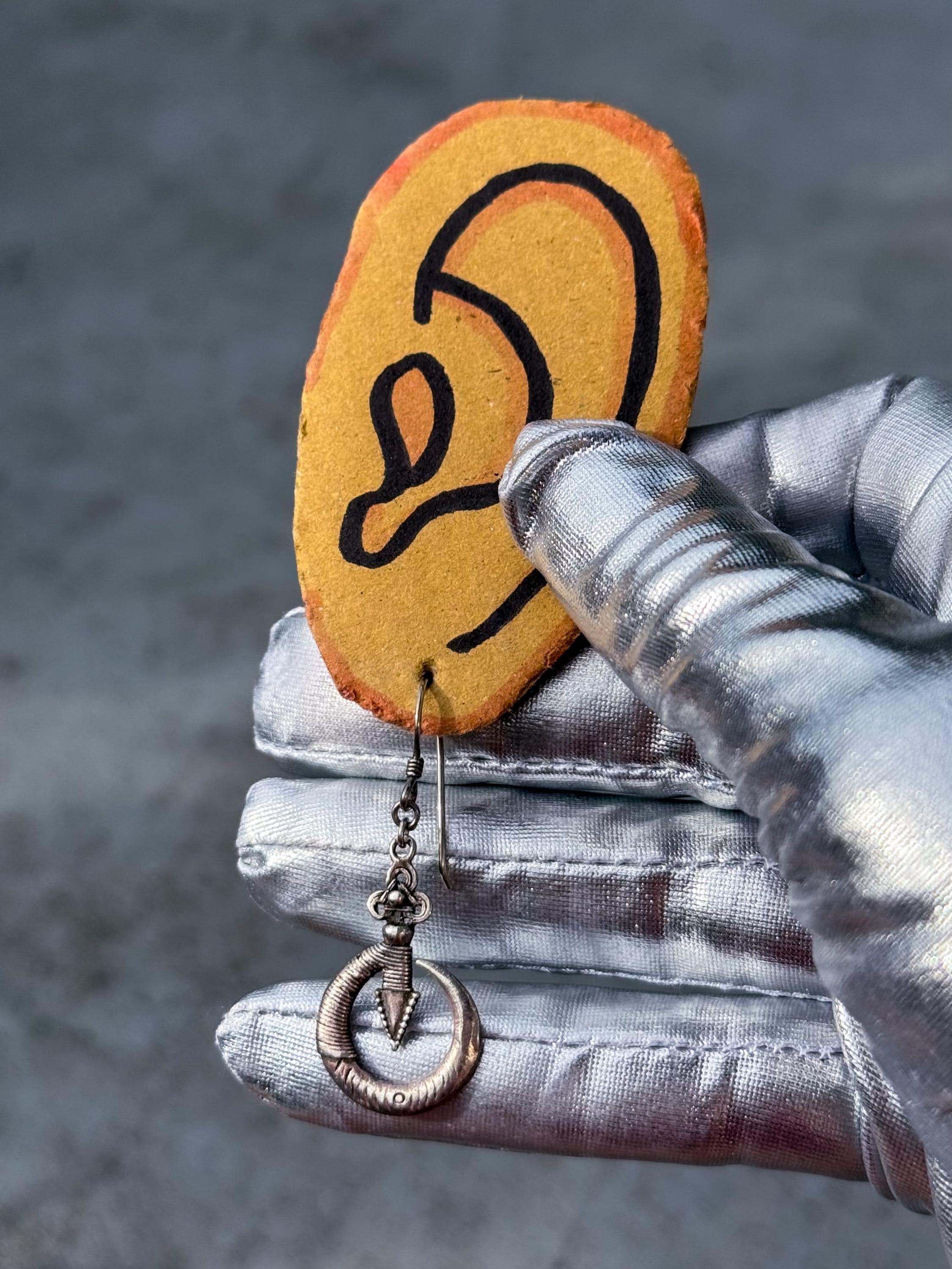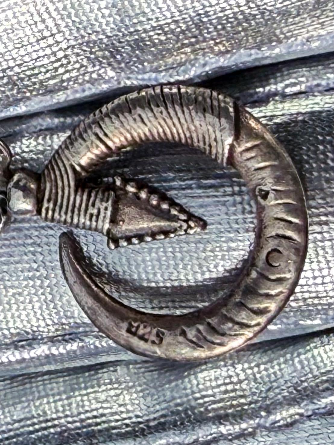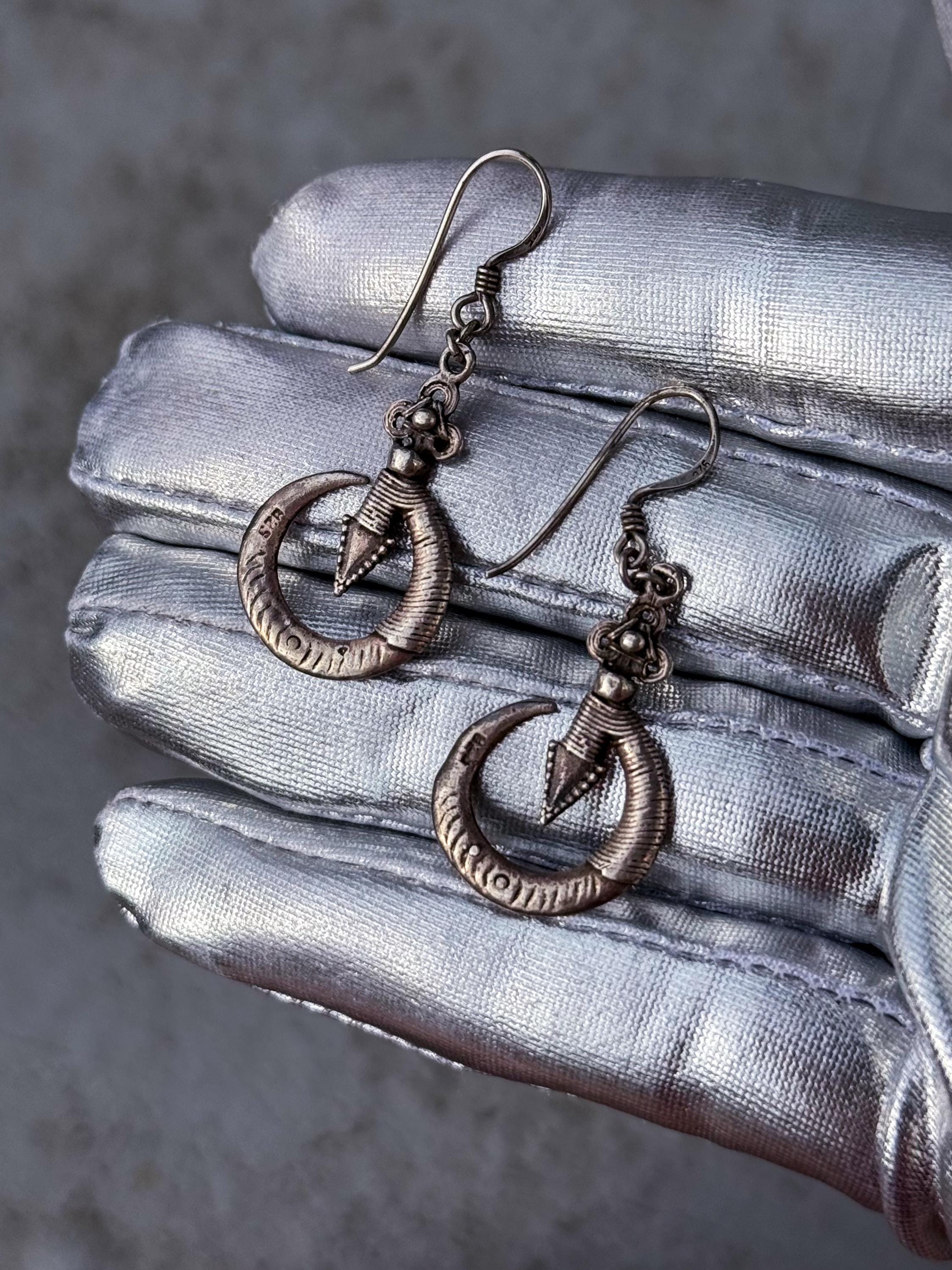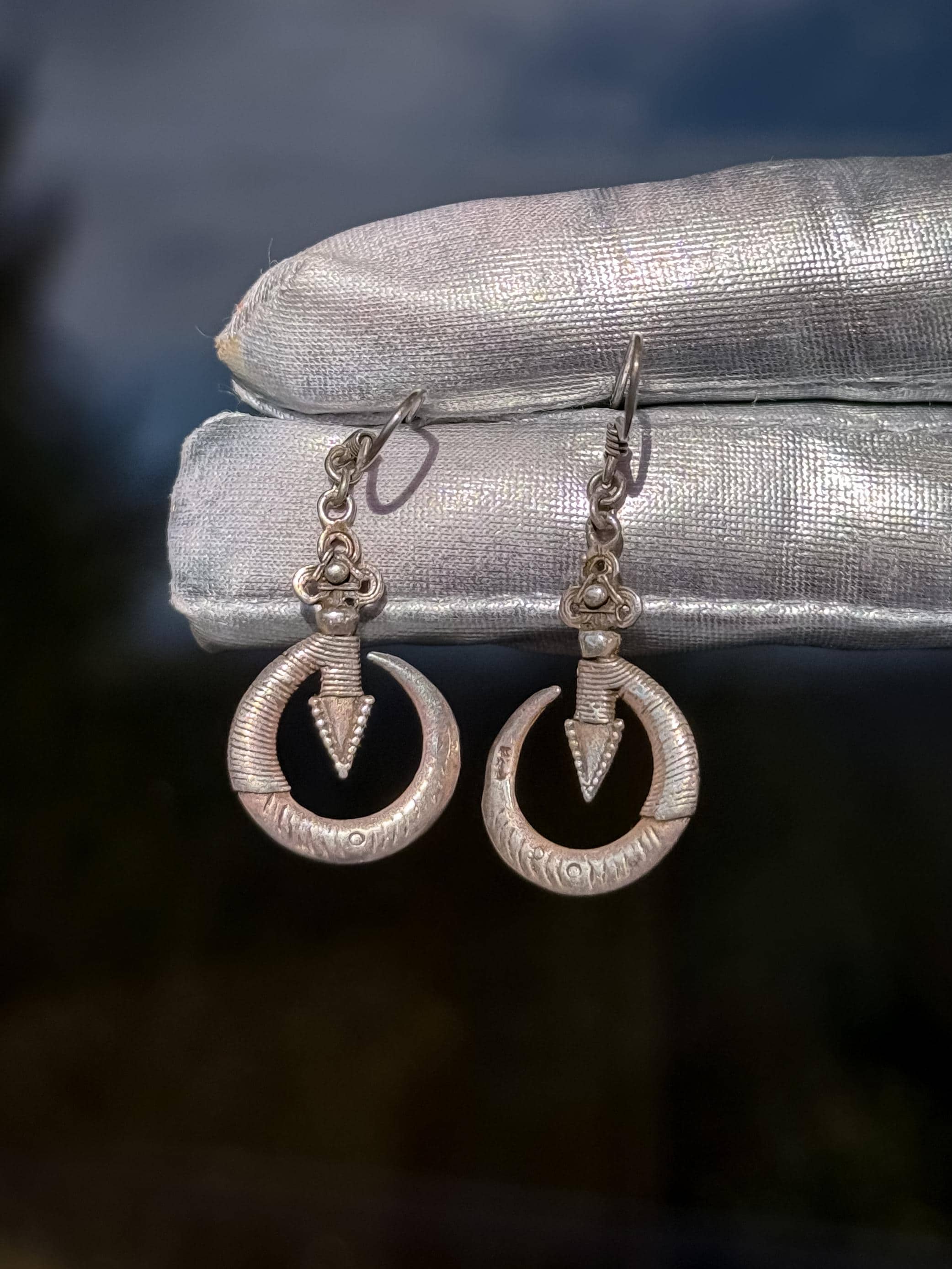 Vintage sterling silver Yao bent arrow earrings. Traditionally worn as protective pieces.