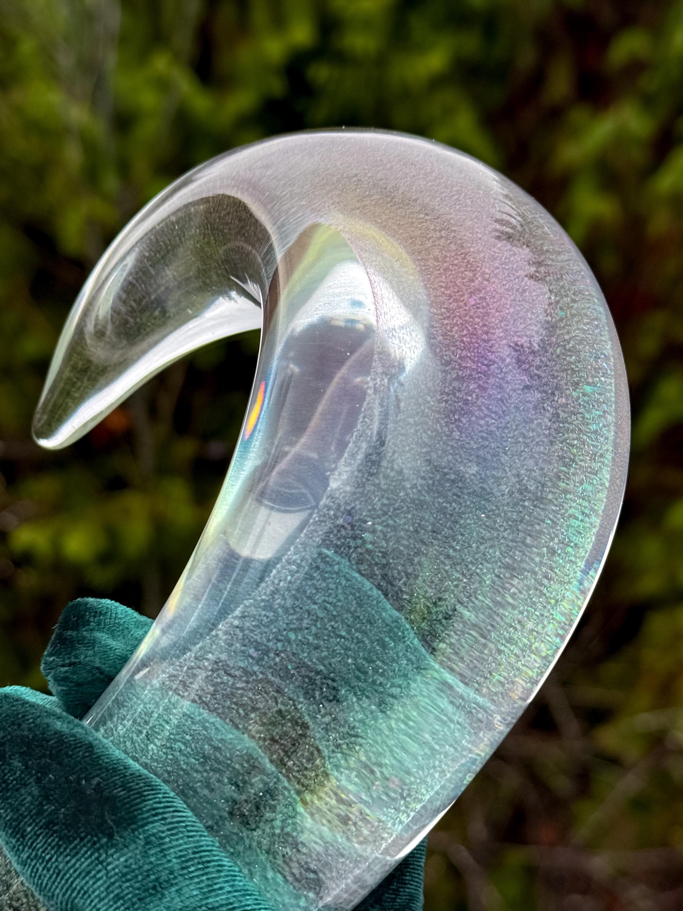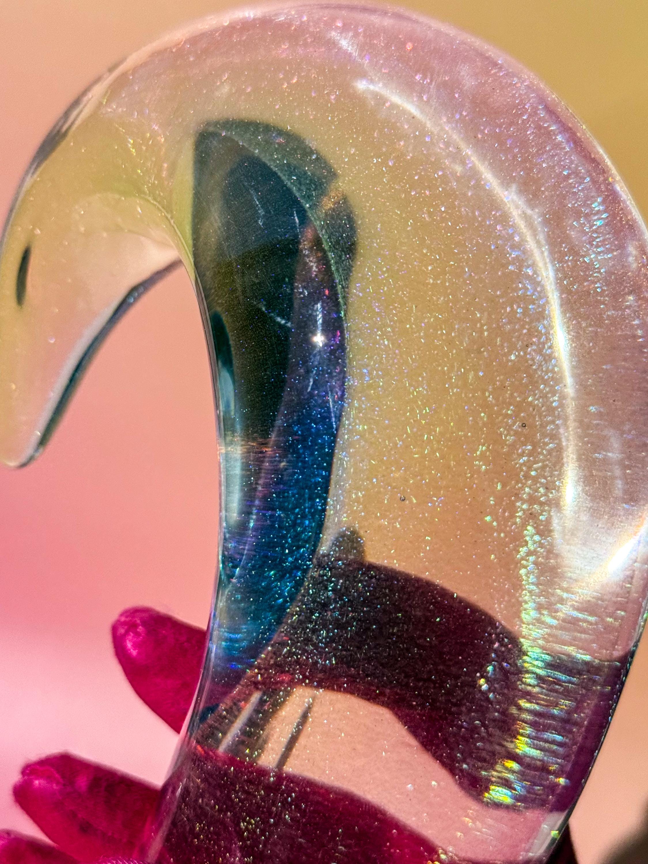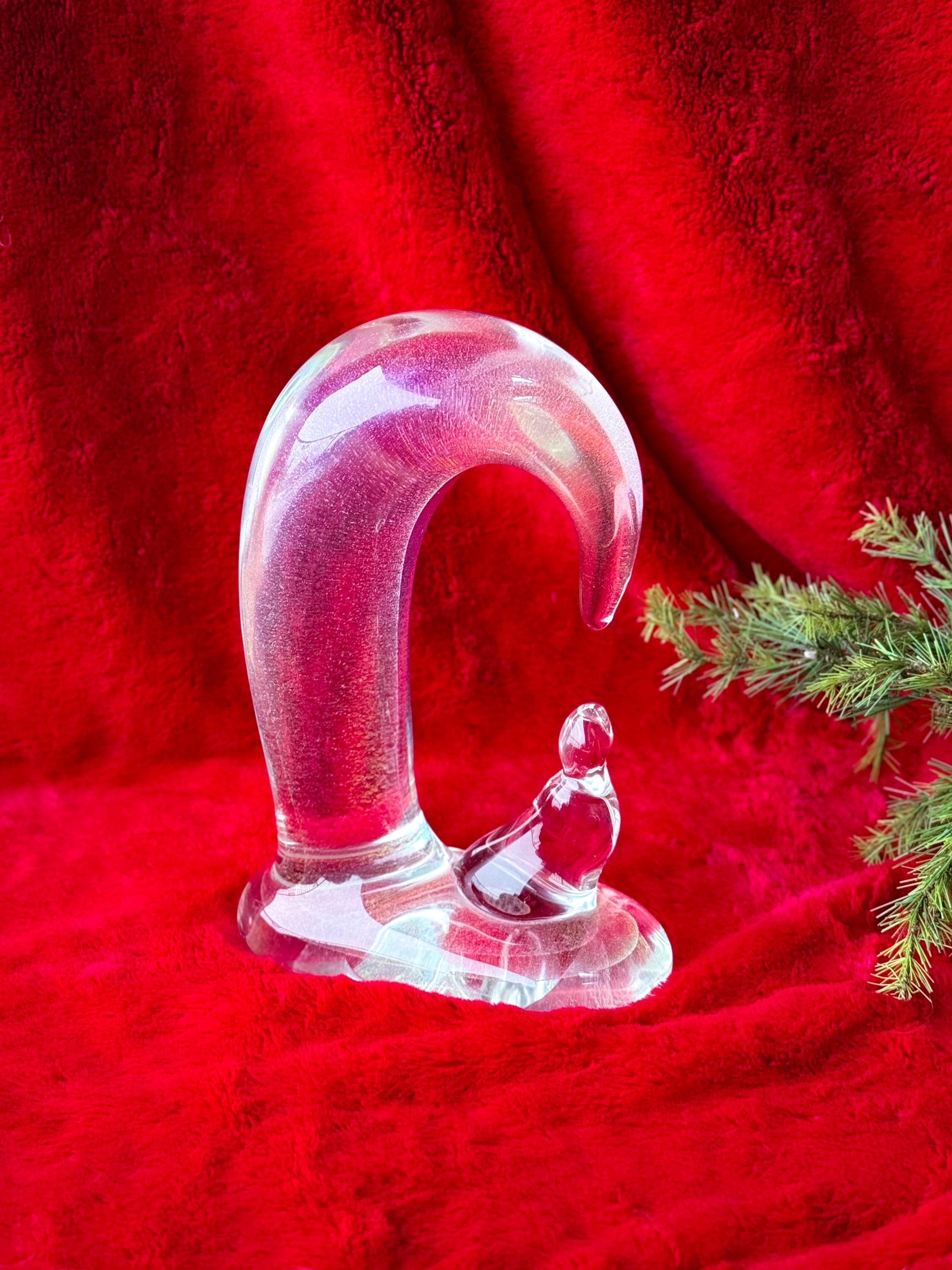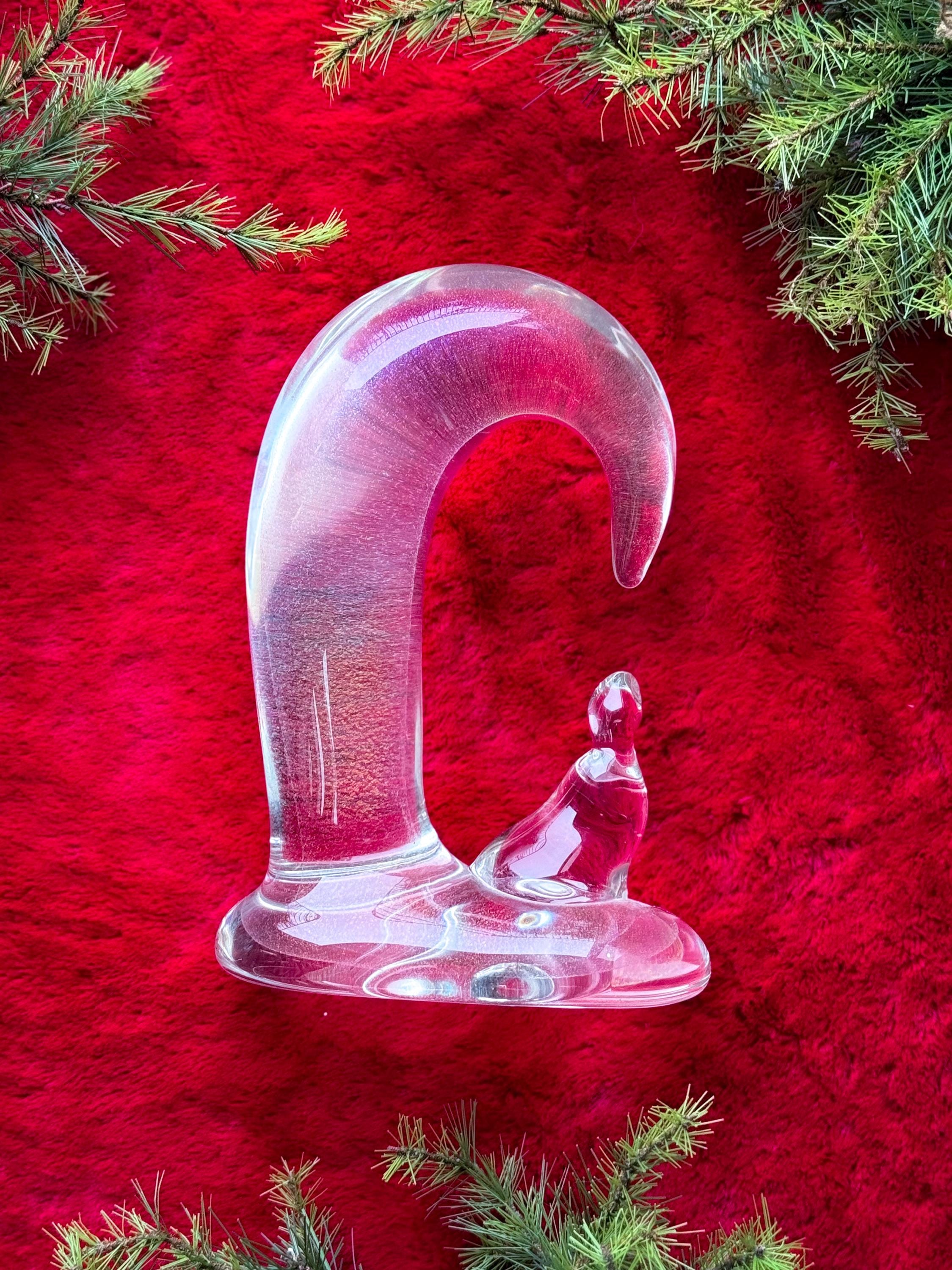 Large & VERY heavy vintage glass penguin mama & baby sculpture. This abstract figural glass is full of fabulous rainbow flecks! Etched signature on the rear base. No chips or cracks.