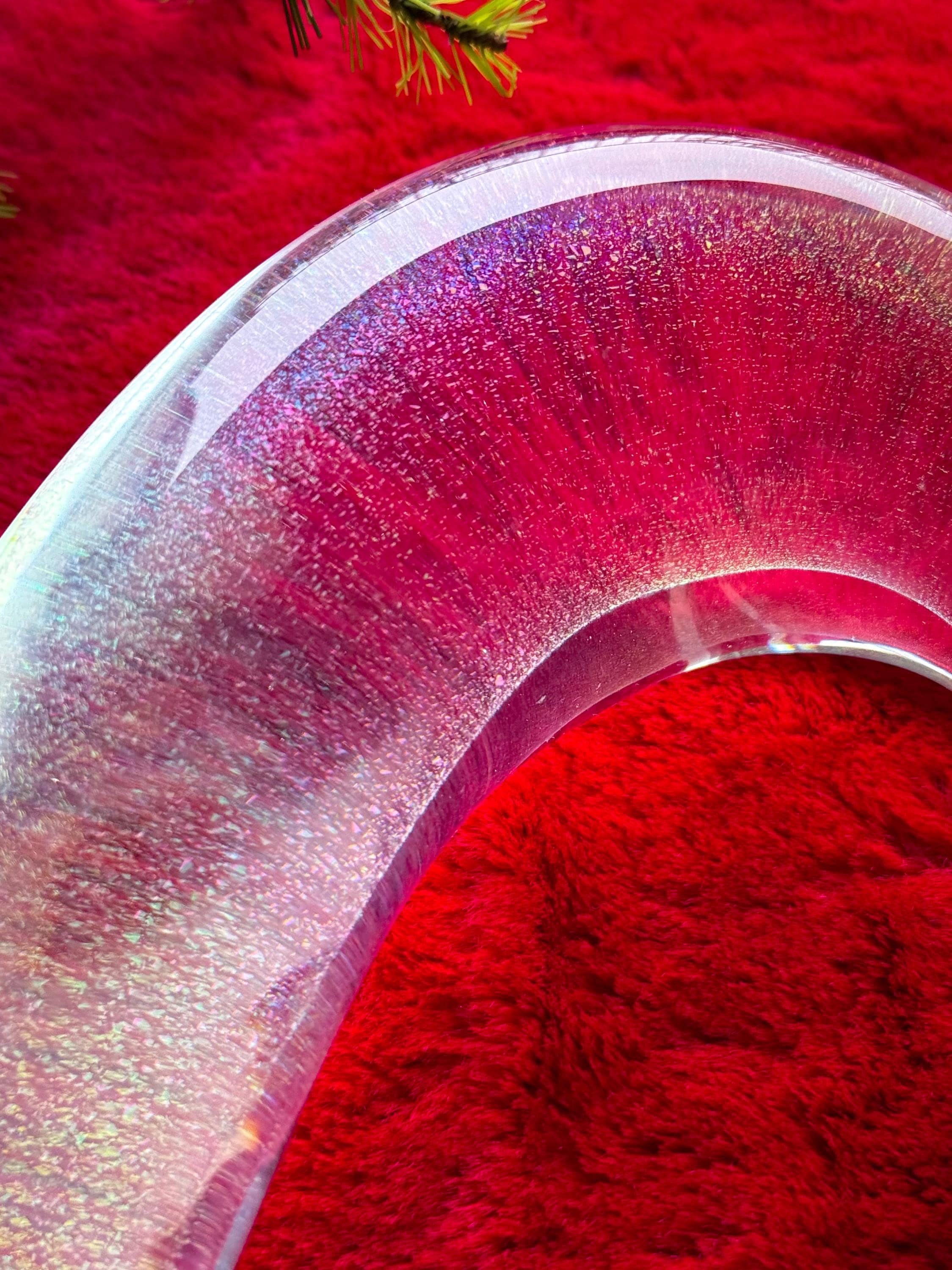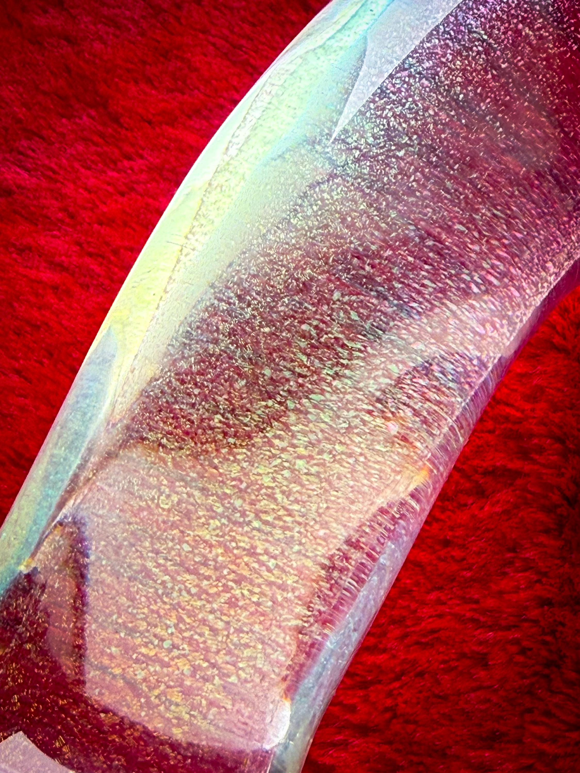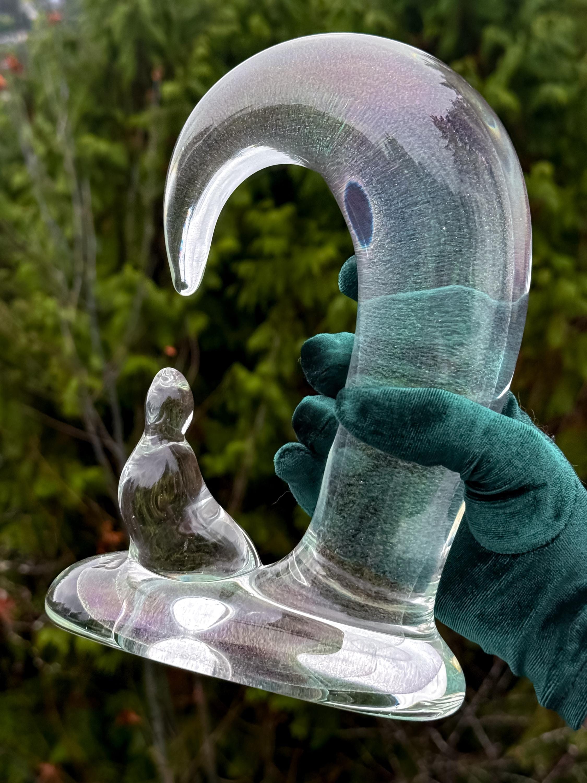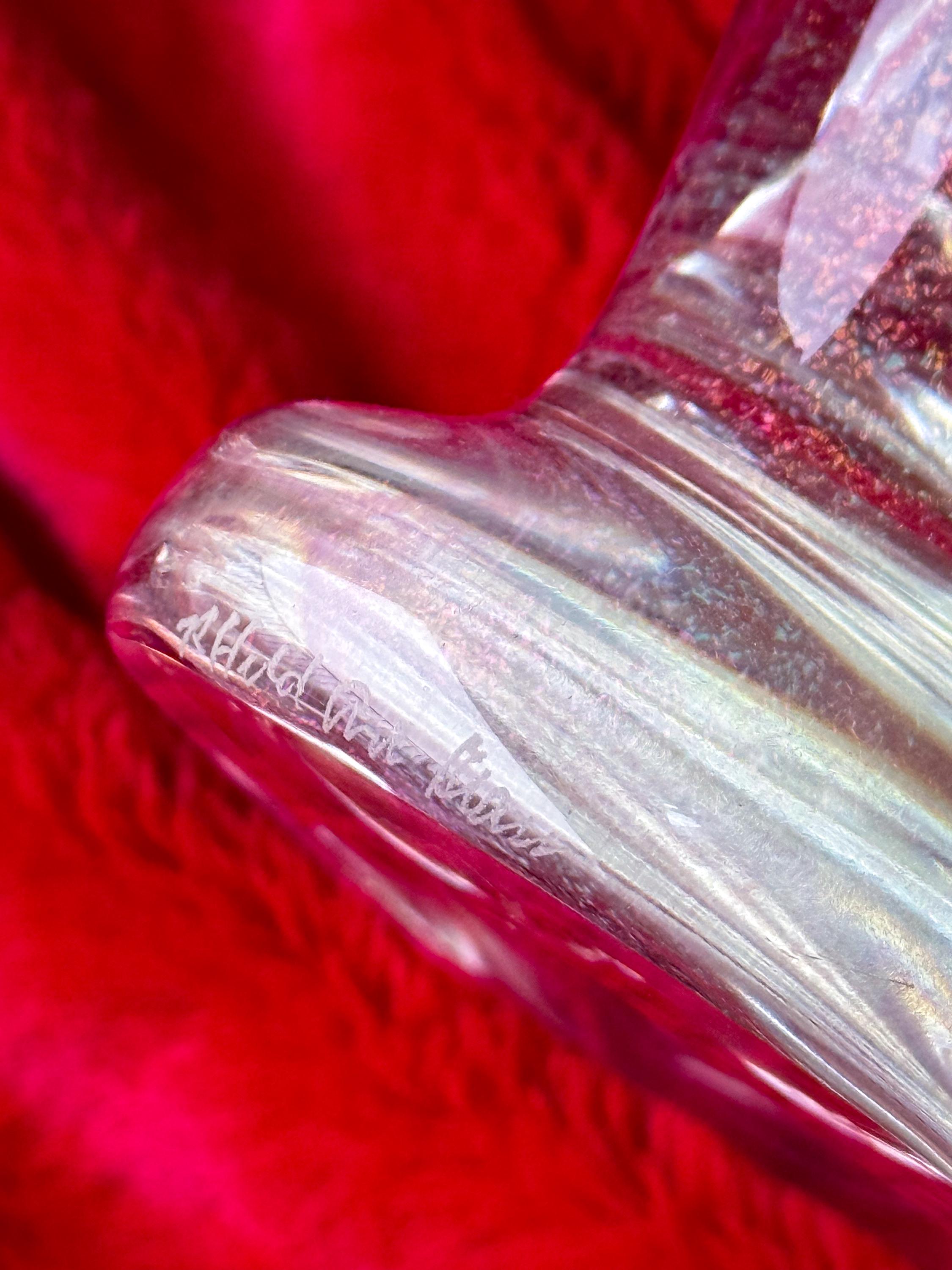 Large & VERY heavy vintage glass penguin mama & baby sculpture. This abstract figural glass is full of fabulous rainbow flecks! Etched signature on the rear base. No chips or cracks.