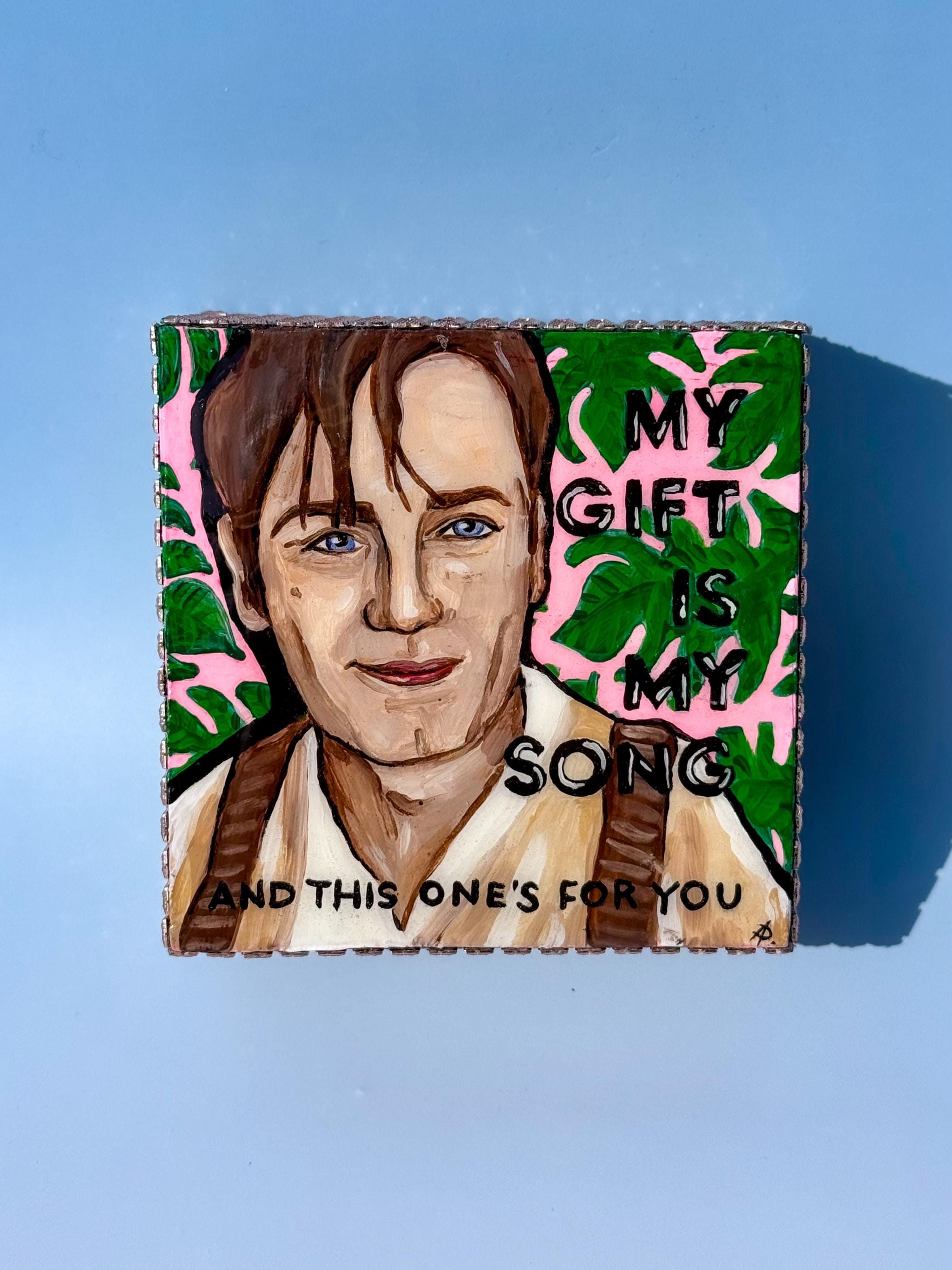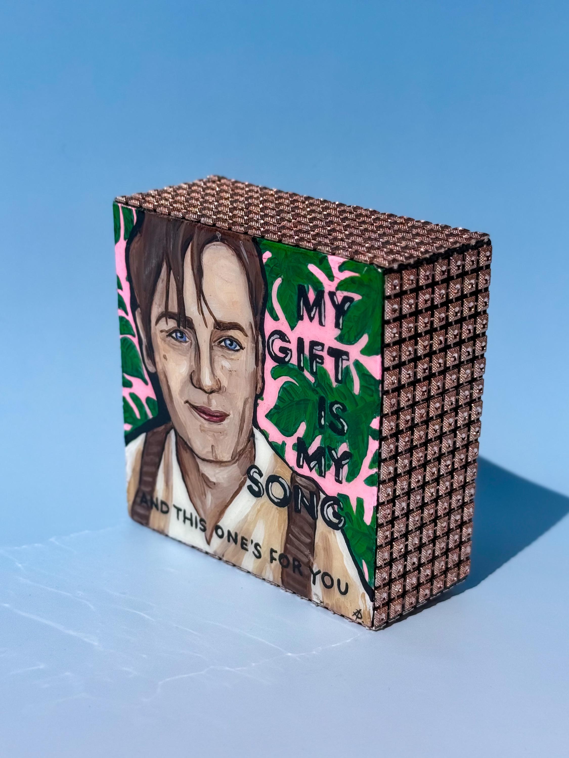 Ewan McGregor as Christian in Baz Luhrmann's Moulin Rouge. Hand painted in acrylic on wood, then topped with multiple layers of resin for a glass-like finish. Rhinestones adhered to the sides.