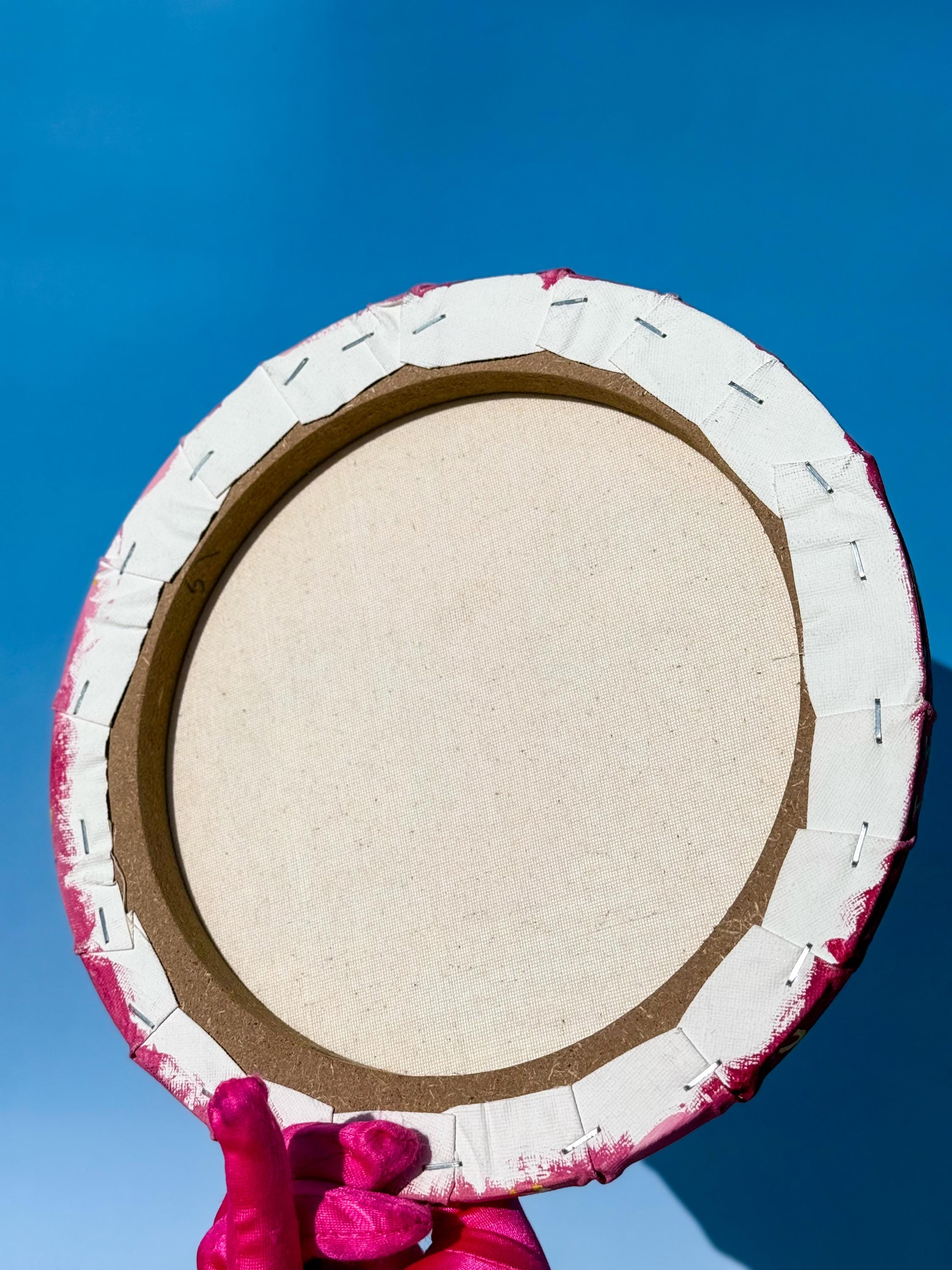Materials: Gotrick round stretched canvas, Golden Artist Colours acrylic paints. Finished with a high quality Krylon UV-Resistant Gloss Clear Acrylic Coating. Protects against fading, discolouration, and is moisture-resistant. Signed and titled on the rear.