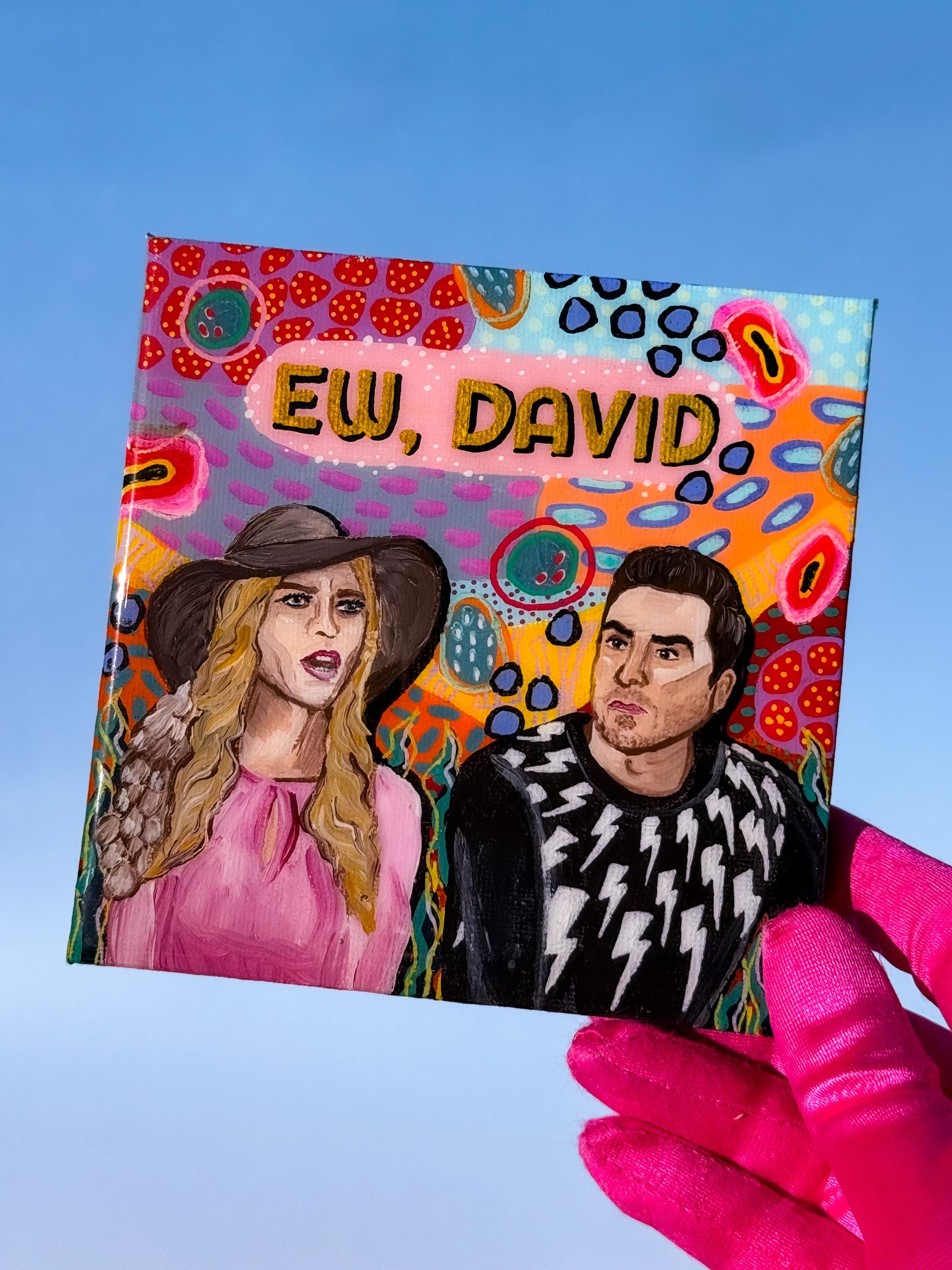 The fantastic Schitt siblings, in all their glory. Hand painted in oil and acrylic on canvas, then topped with multiple layers of resin for a glass-like finish.